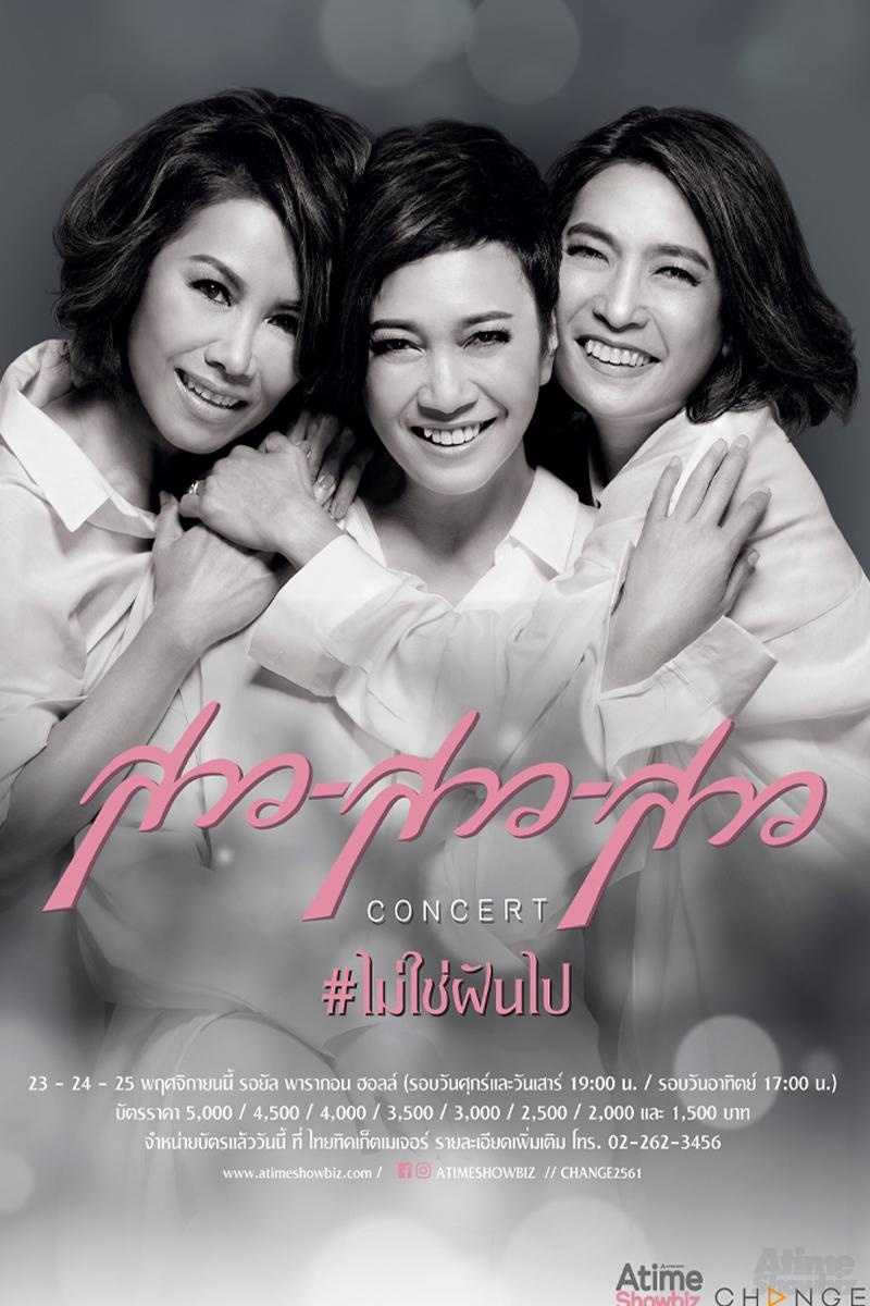 คอนเสิร์ตสาวสาวสาวคอนเสิร์ต : คอนเสิร์ตสาวสาวสาวศิลปิน : แอม เสาวลักษณ์, แหม่ม พัชริดา, ปุ้ม อรวรรณศิลปินรับเชิญ : ตั๊ก ลีลา, เบน ชลาทิศ, อ๊อฟ ปองศักดิ์, แดน วรเวช, บีม กวีวันที่แสดง : วันที่ 23-24-25 พฤศจิกายน 2561 จำนวน 3 รอบสถานที่แสดง : Royal Paragon HallMore Gallery+ 1Share :