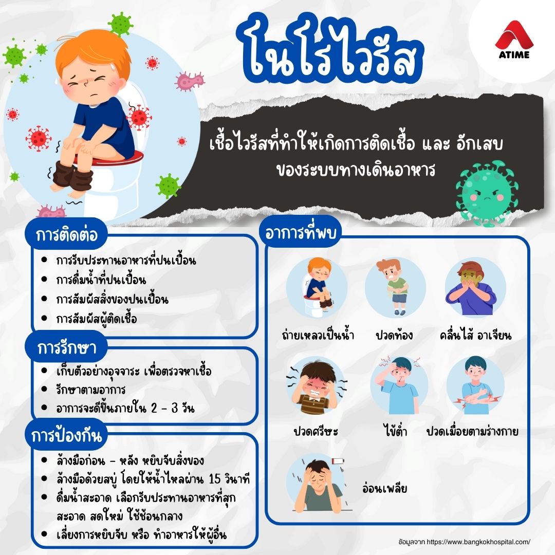 • เด็กจับหรือสัมผัสกับสิ่งของที่มีเชื้อโนโรไวรัสแล้วเอานิ้วเข้าปาก