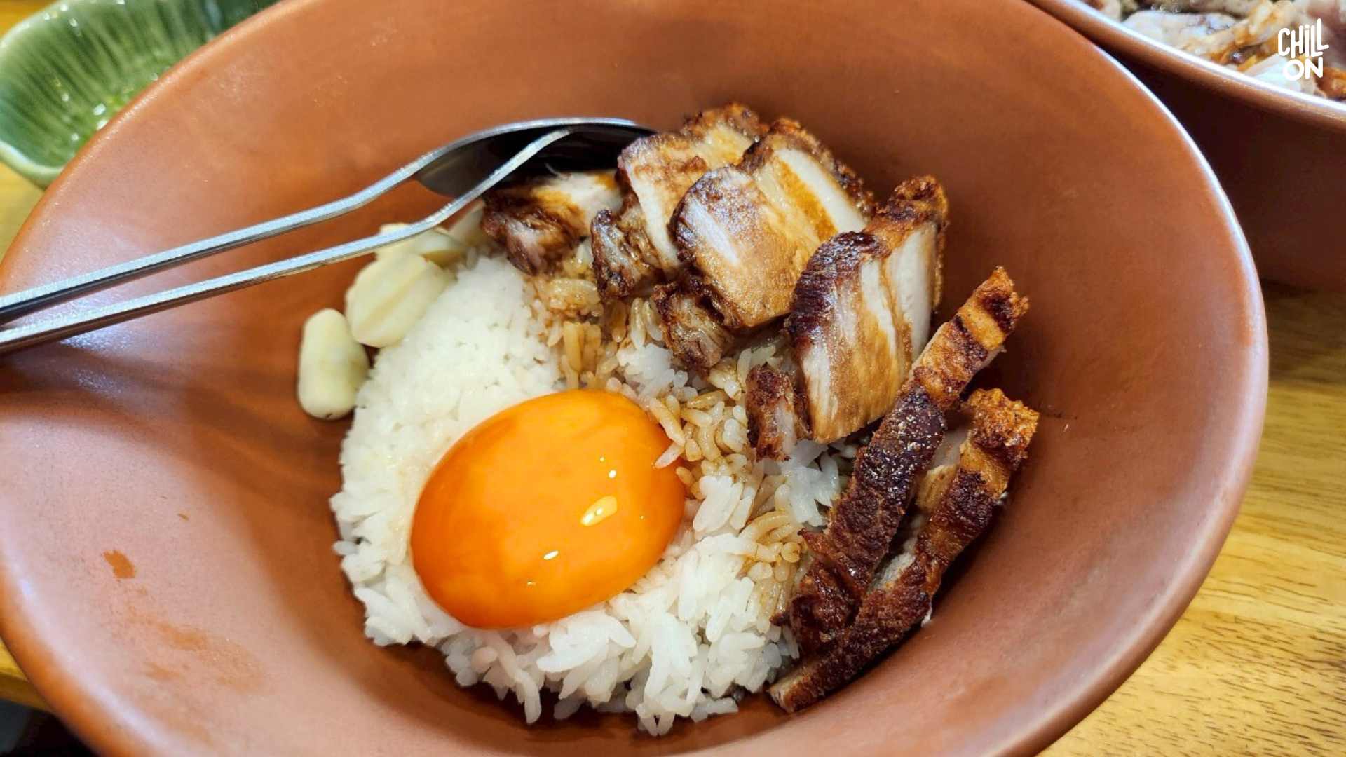 นอกจากก๋วยเตี๋ยวเรือแล้ว ร้านศรินทิพย์ ยังมีเมนูซิกเนเจอร์ที่ฮิตไม่แพ้กันนั่นคือ ข้าวไข่ข้นกุ้งกระเทียม เมนูนี้โดดเด่นที่ไข่ข้นเนื้อนุ่มฟู วางมาบนข้าวสวยร้อนๆ และราดด้วยกุ้งทอดกระเทียม ที่ผัดมาได้หอมกลิ่นกระเทียมเจียวและกลิ่นของกะทะ บอกเลยว่าทุกคำที่ตักเข้าปากคือความฟิน!