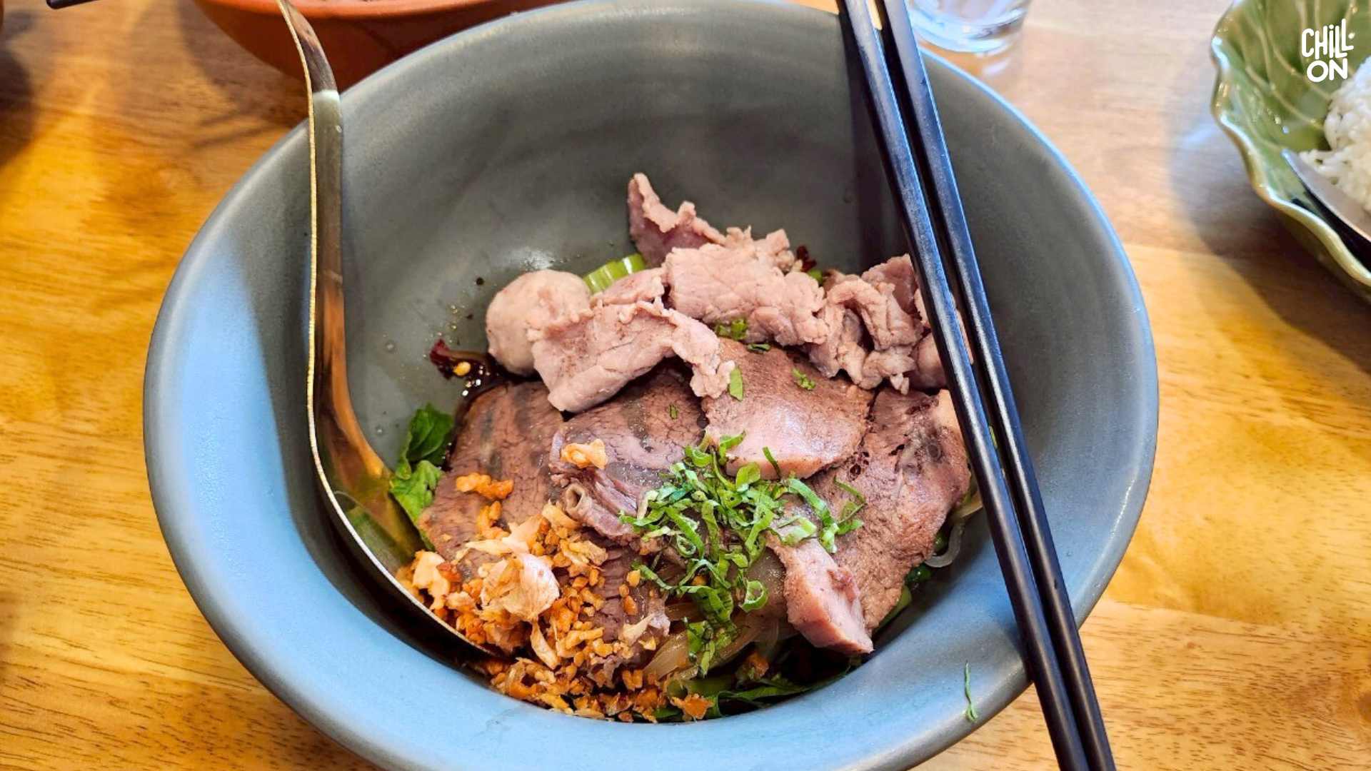 หัวใจหลักของ ศรินทิพย์ ก๋วยเตี๋ยวเรือ คือรสชาติที่เข้มข้นถึงเครื่องของน้ำซุปก๋วยเตี๋ยวเรือ ที่ปรุงมาอย่างกลมกล่อม ไม่ต้องปรุงเพิ่มก็อร่อยได้เลย เส้นก๋วยเตี๋ยวลวกมาพอดีๆ และท็อปด้วยเนื้อสัตว์ที่เลือกได้ตามชอบ ไม่ว่าจะเป็นเนื้อสด เนื้อเปื่อย หรือลูกชิ้น ที่บอกเลยว่าเข้ากันสุดๆ สำหรับคอ ก๋วยเตี๋ยวเนื้อ ต้องมาลองเนื้อตุ๋นของที่นี่เลยค่ะ เปื่อยนุ่ม แทบละลายในปาก!