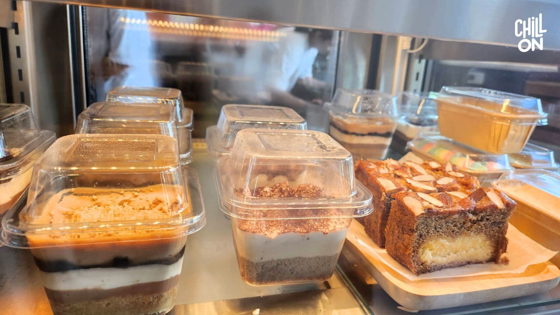 นอกจากเครื่องดื่มจะเด็ดแล้ว ขนมหวาน ของที่นี่ก็อร่อยไม่แพ้กัน เมนูซิกเนเจอร์ที่ทุกคนพูดถึงคือ เค้กกล้วยหอมอบชีส (Banana Cake with Cheese) ที่ให้สัมผัสละมุนลิ้นสุด ๆ พร้อมความเค็มนัวจากครีมชีสที่เข้ากันดีอย่างไม่น่าเชื่อ จะกินคู่กับชาเขียวหรือกาแฟก็ลงตัวสุด ๆ