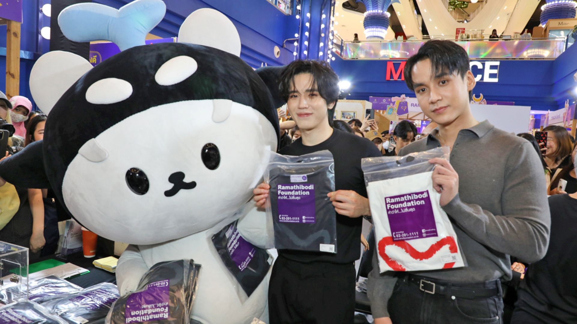 อีกหนึ่งไฮไลต์ของงาน คือ โมเมนต์ใจฟูหลังจากจบกิจกรรมบนเวที โดยพ่อพ่อนิวและโพกาซัง แท็กทีมกันมาที่บูธมูลนิธิรามาธิบดีฯ เพื่อมาสวมบทพ่อค้าสุดคิวท์ ช่วยกันจำหน่ายเสื้อของมูลนิธิรามาธิบดีฯ บรรยากาศเป็นไปด้วยความอบอุ่น มีเหล่าแฟนคลับตามมาอุดหนุนและให้กำลังใจจนแน่นบูธ สมกับเป็นงานแฟร์สายบุญ ที่ทำให้ทุคนใจฟูไปกับพลังของการให้...ไม่สิ้นสุด ถ้วนหน้า งานนี้ ก่อนโบกมือลาแฟนๆ พ่อพ่อนิว ยังถือโอกาสป้ายยาคนที่กำลังมองหากิจกรรมดี ๆ มาร่วมเป็นส่วนหนึ่งของ “การให้” ที่ยิ่งใหญ่ ในงาน