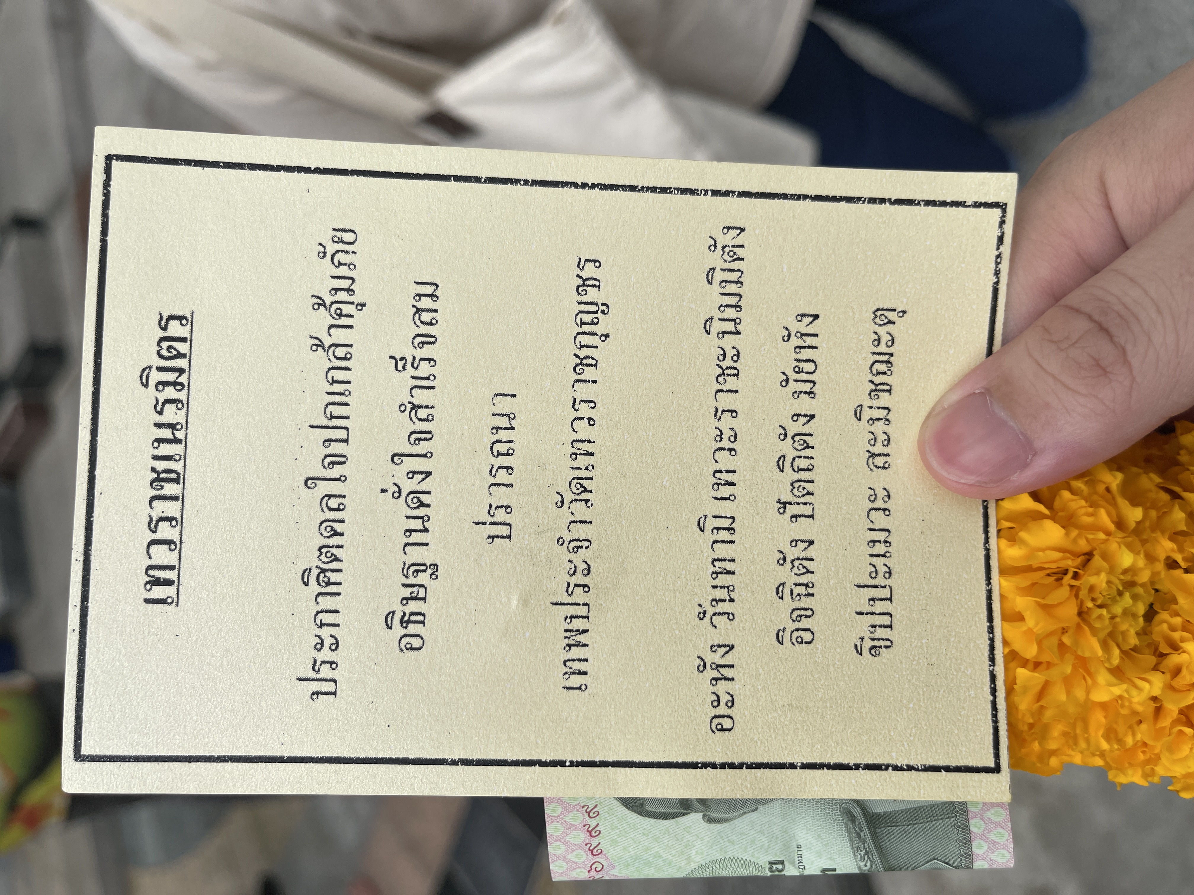 1.เตรียมพวงมาลัย พร้อมธนบัตร 2 ใบ
