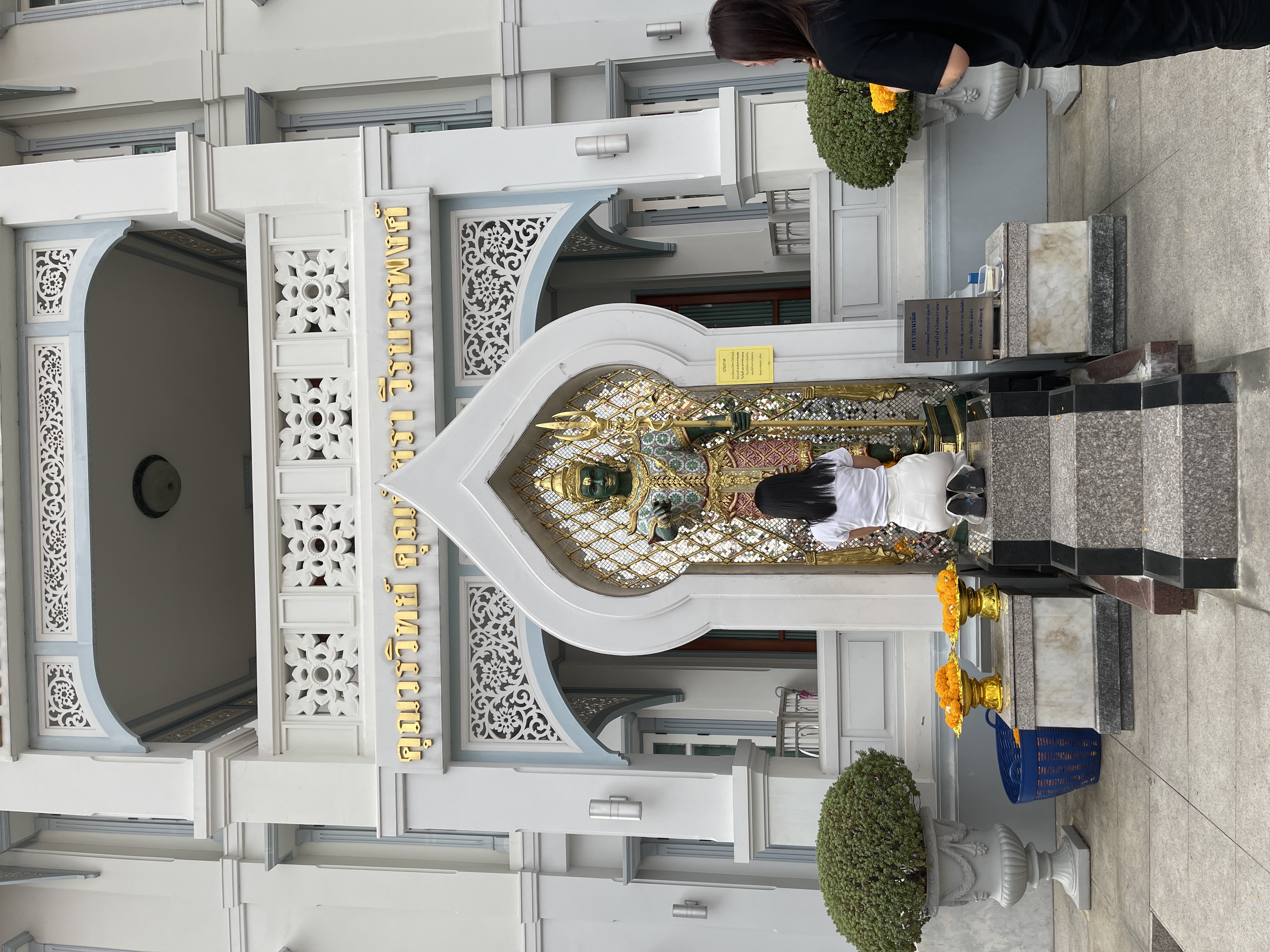 3.วางพวงมาลัย ม้วนธนบัตรที่เตรียมมาสอดเข้าที่พระหัตถ์องค์เทวราชฯ