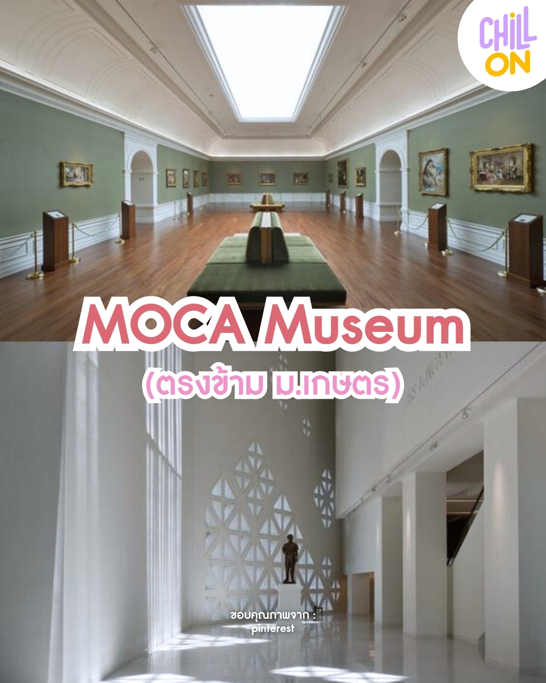 พิพิธภัณฑ์ศิลปะไทยร่วมสมัยโมค่า ด้านในแต่ละชั้นจะมีคอนเซ็ปต์ในการจัดแสดงแตกต่างกัน มีทั้งงานศิลปะของไทยรวมไปถึงงานศิลปะที่ได้รับอิทธิพลจากต่างประเทศ และที่โมค่ามีการตกแต่ง การจัดแสง ไม่ว่าจะเป็นแสงไฟหรือแสงธรรมชาติที่ทะลุผ่านกำแพงคือลงตัวมากเลยค่ะ ออกเดทแบบสายอาร์ตที่นี่ก็คือหวานไปอีกแบบนะ