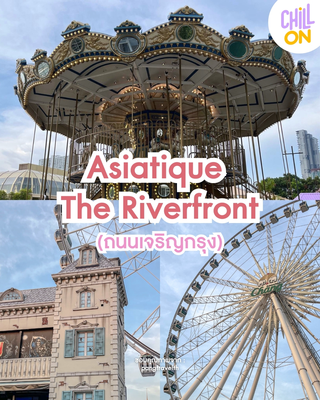 ถัดมาเป็นสถานที่ที่ให้บรรยากาศแบบสุดชิล แหล่งท่องเที่ยวและช้อปปิ้งติดริมน้ำเจ้าพระยา เดินทางง่ายสุด ๆ สามารถมาได้ทั้งตอนกลางวันและตอนกลางคืน ด้านในถูกแบ่งออกเป็นหลายโซนมีทั้งร้านอาหาร แหล่งช้อปปิ้ง และมีที่นั่งให้พักผ่อนชมวิวแม่น้ำเจ้าพระยากันแบบเพลิน ๆ จุดไฮไลท์ที่ไม่ควรพลาดก็คือชิงช้าสวรรค์ขนาดใหญ่นั่นเอง มาที่นี่นอกจะจะได้บรรยากาศที่สุดแสนโรแมนติกแล้ว ยังได้อิ่มท้อง และจะได้รูปถ่ายหวาน ๆ กลับไปอย่างแน่นอนค่ะ