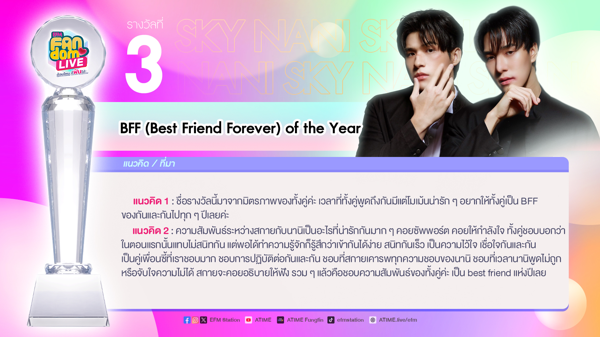 3. ชื่อ/แนวคิด ของรางวัล “BFF (Best Friend Forever) Of the Year ”