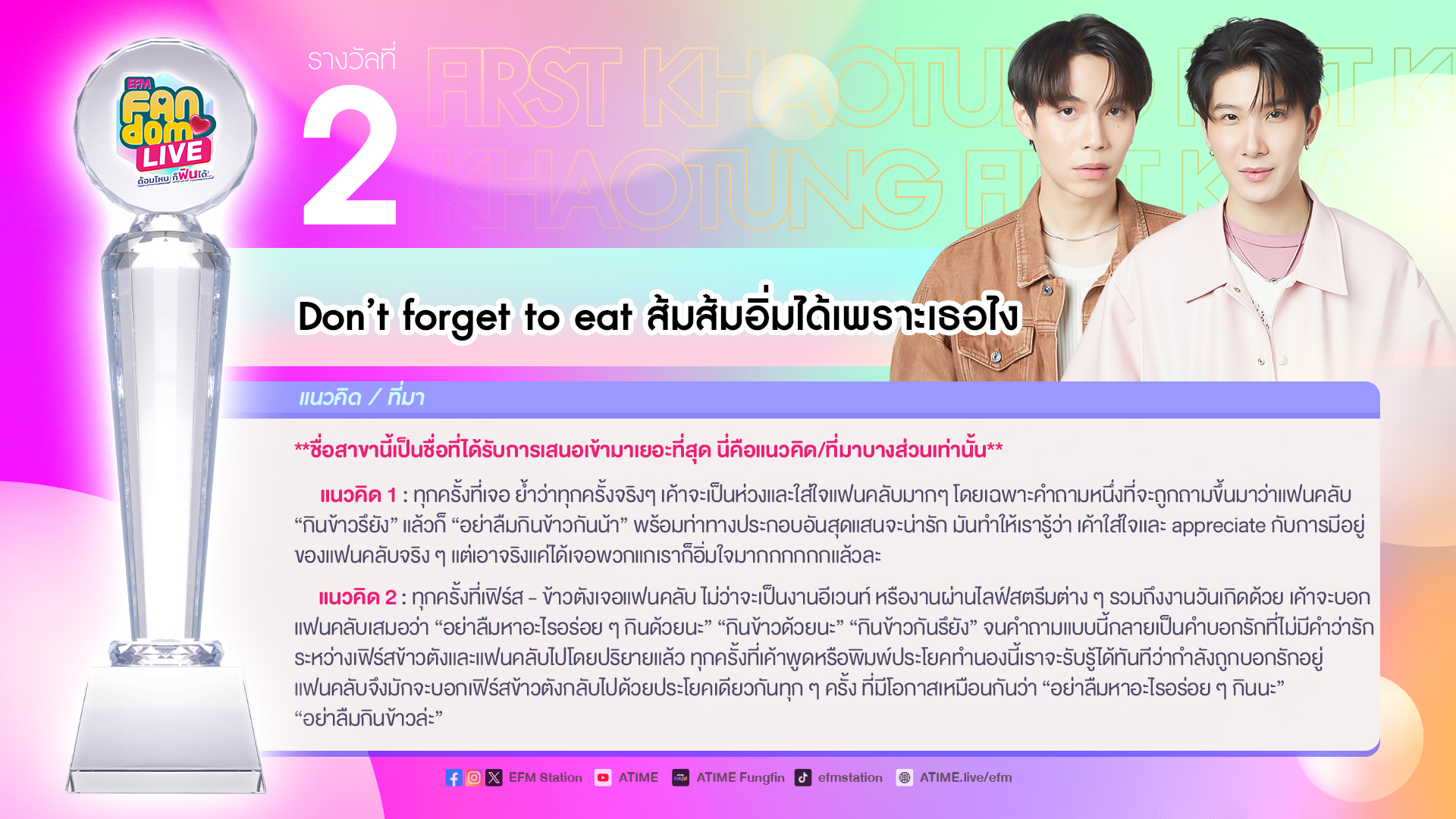 2. ชื่อ/แนวคิด ของรางวัลที่ 3 “Don’t forget to eat ส้มส้มอิ่มได้เพราะเธอไง”