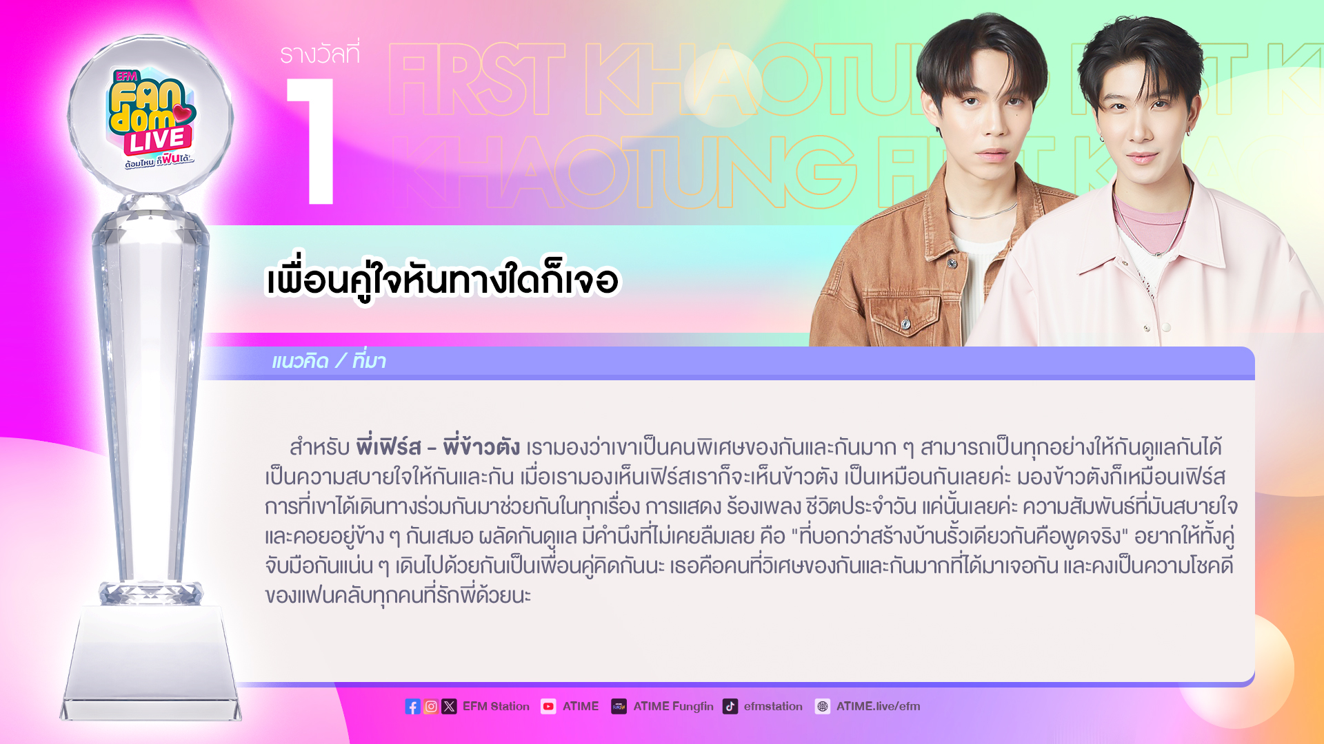 “EFM FANDOM AWARDS รางวัลพิเศษ เพื่อคนพิเศษ” จากที่แฟน ๆ เสนอและเปิดโหวต