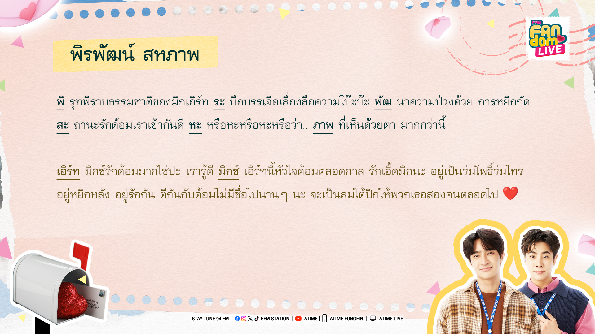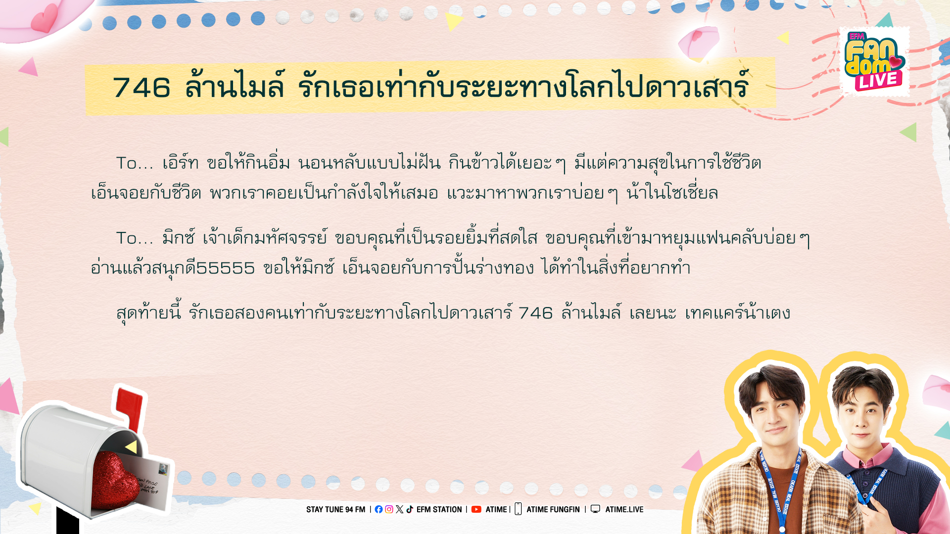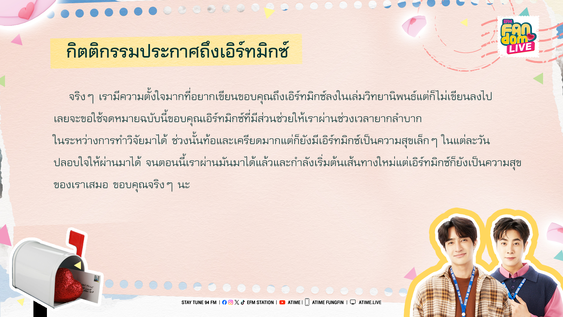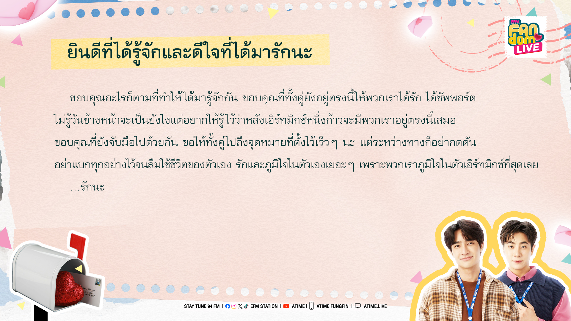 ในช่วงแรกของรายการ พี่ๆดีเจอ่าน 5 จดหมาย “EFM FANDOM LOVE LETTERS”