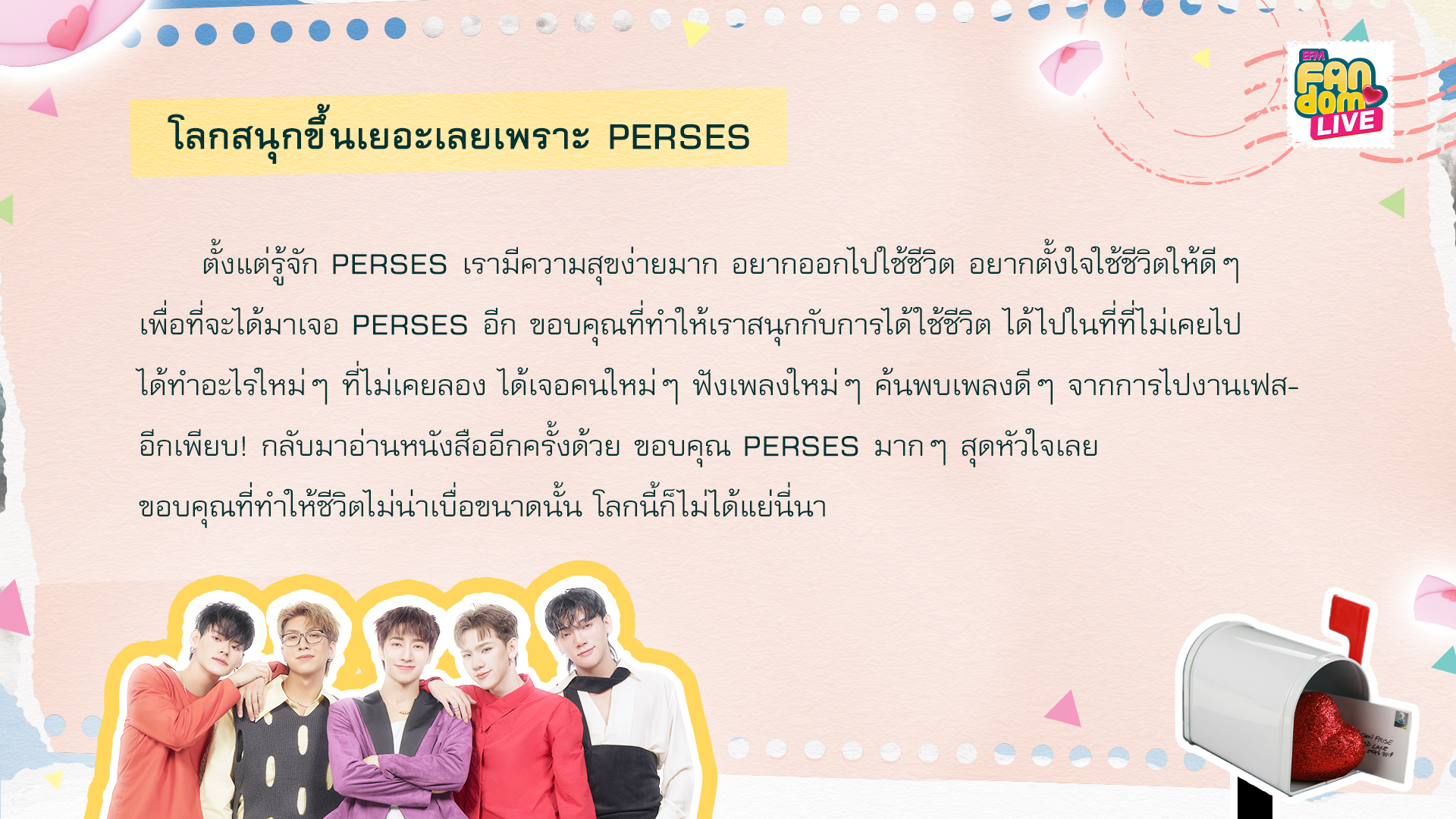 จดหมายฉบับที่ 1 ชื่อจดหมายว่า... โลกสนุกขึ้นเยอะเลยเพราะ PERSES