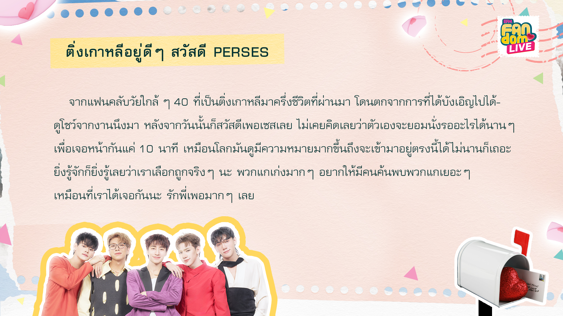 จดหมายฉบับที่ 3 ชื่อจดหมายว่า... ติ่งเกาหลีอยู่ดีๆ สวัสดี PERSES