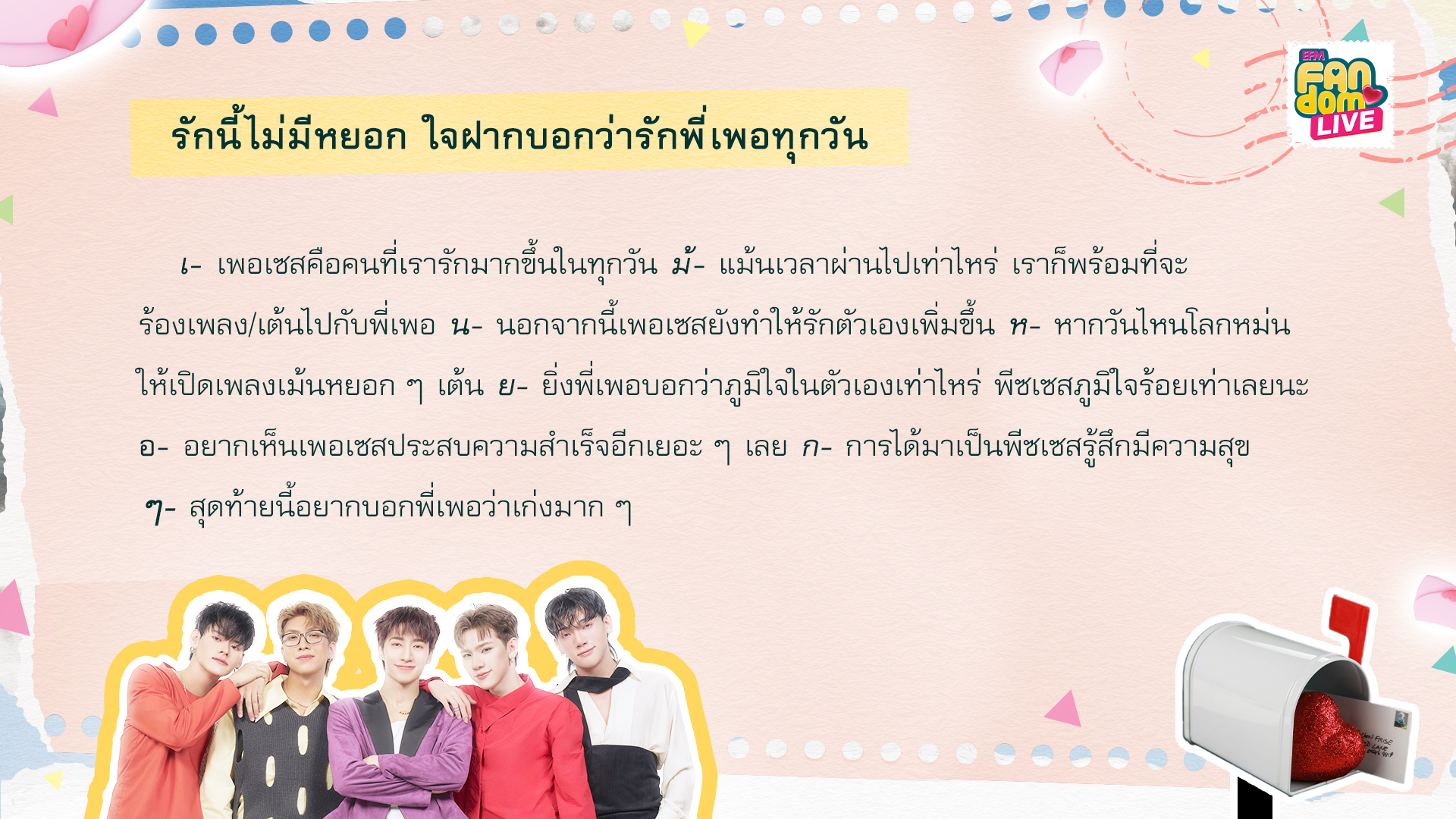 ในช่วงแรกของรายการ พี่ ๆ ดีเจอ่าน 5 จดหมาย “EFM FANDOM LOVE LETTERS”