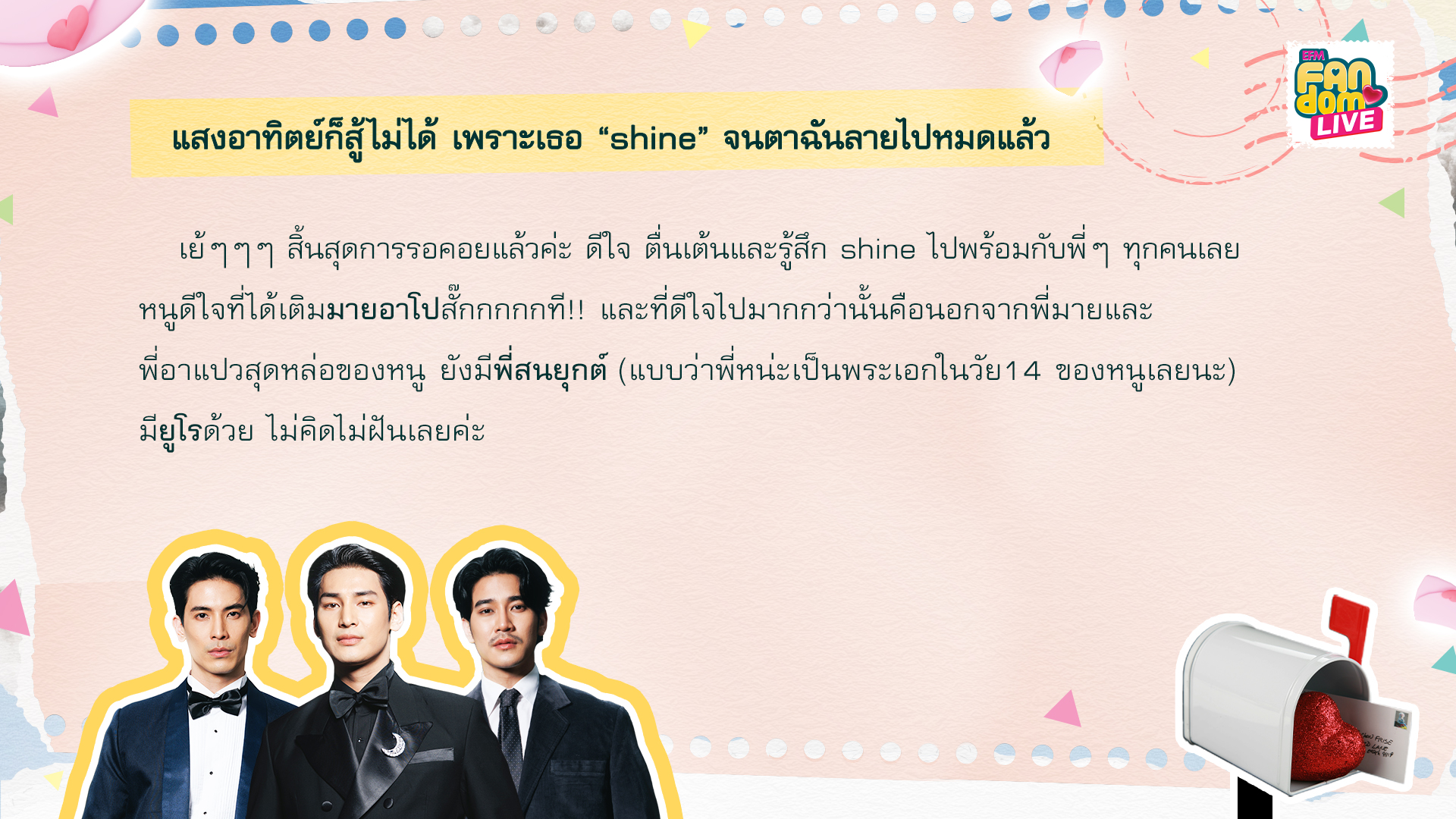จดหมายฉบับที่ 1 ชื่อจดหมายว่า... พร้อมจะ Shine ไปทุกที่กับซีรีย์ Gay แห่งปีของประเทศไทย