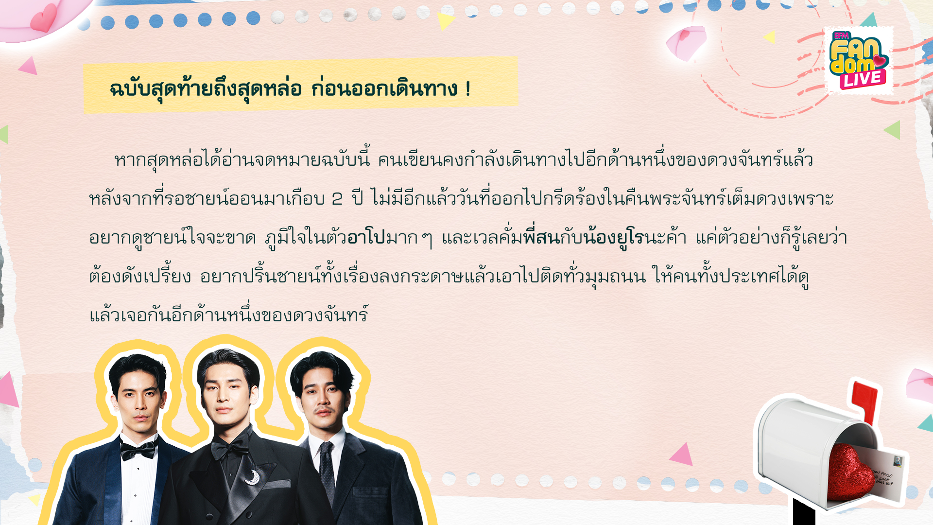 จดหมายฉบับที่ 6 ชื่อจดหมายว่า... ฉบับสุดท้ายถึงสุดหล่อ ก่อนออกเดินทาง !