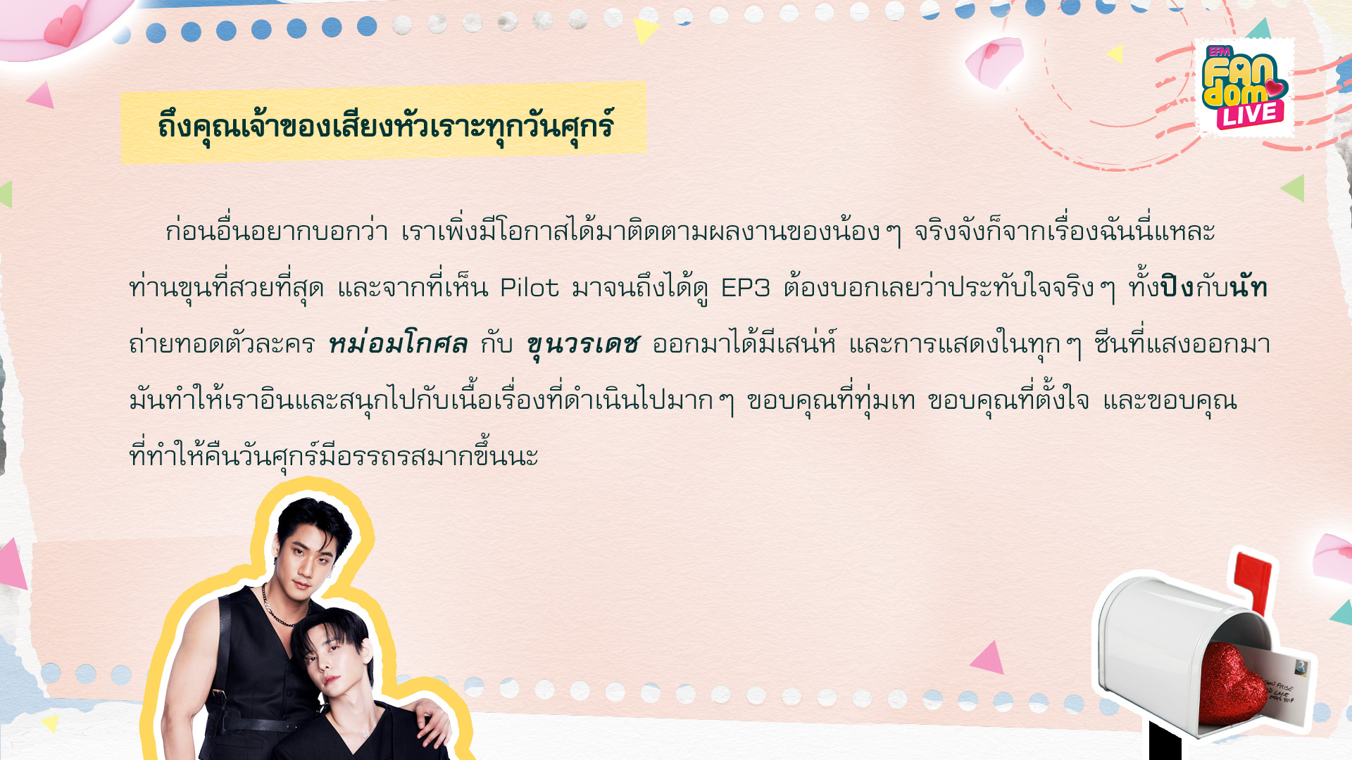 เขียนข้ามยุคมาให้พี่ ๆ ดีเจ ได้อ่านในช่วง “EFM FANDOM LOVE LETTER”