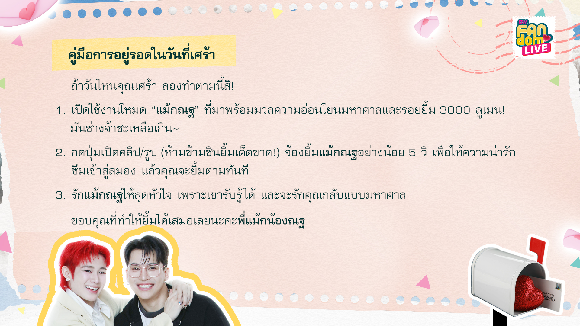 สุดท้ายนี้... รายการ EFM FANDOM LIVE ขอขอบคุณ “แม้ก - ณฐ ” มากๆเลยน้า ที่มาร่วมพูดคุยกลับมาเช็คอิน สร้างความน่ารักสุดป่วน และฝากซีรีส์ “Suntiny หรือ….อลวนที่พรหมลิขิต” รับชมแบบ Uncut ได้แล้ววันนี้ทาง IQIYI นะคะ