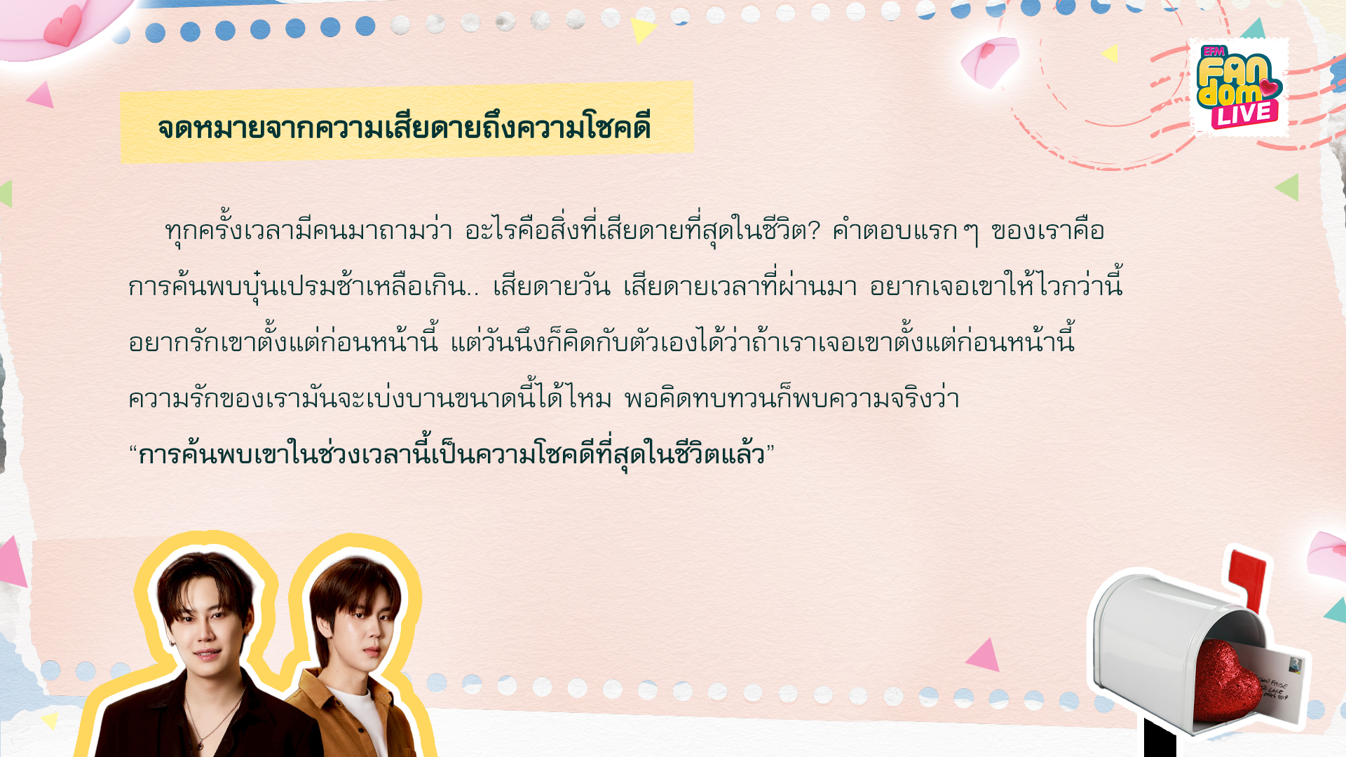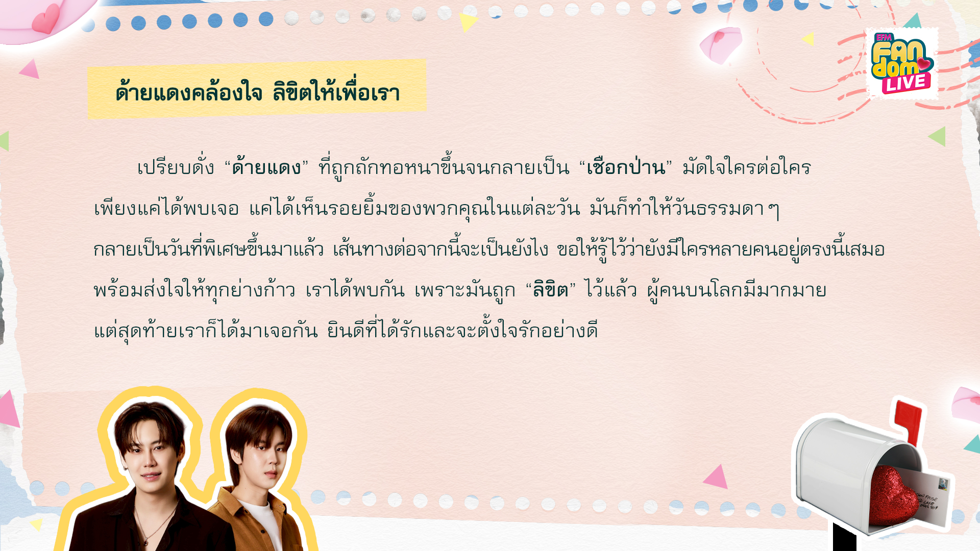 จดหมายฉบับที่ 1 ชื่อจดหมายว่า... ด้ายแดงคล้องใจ ลิขิตให้เพื่อเรา