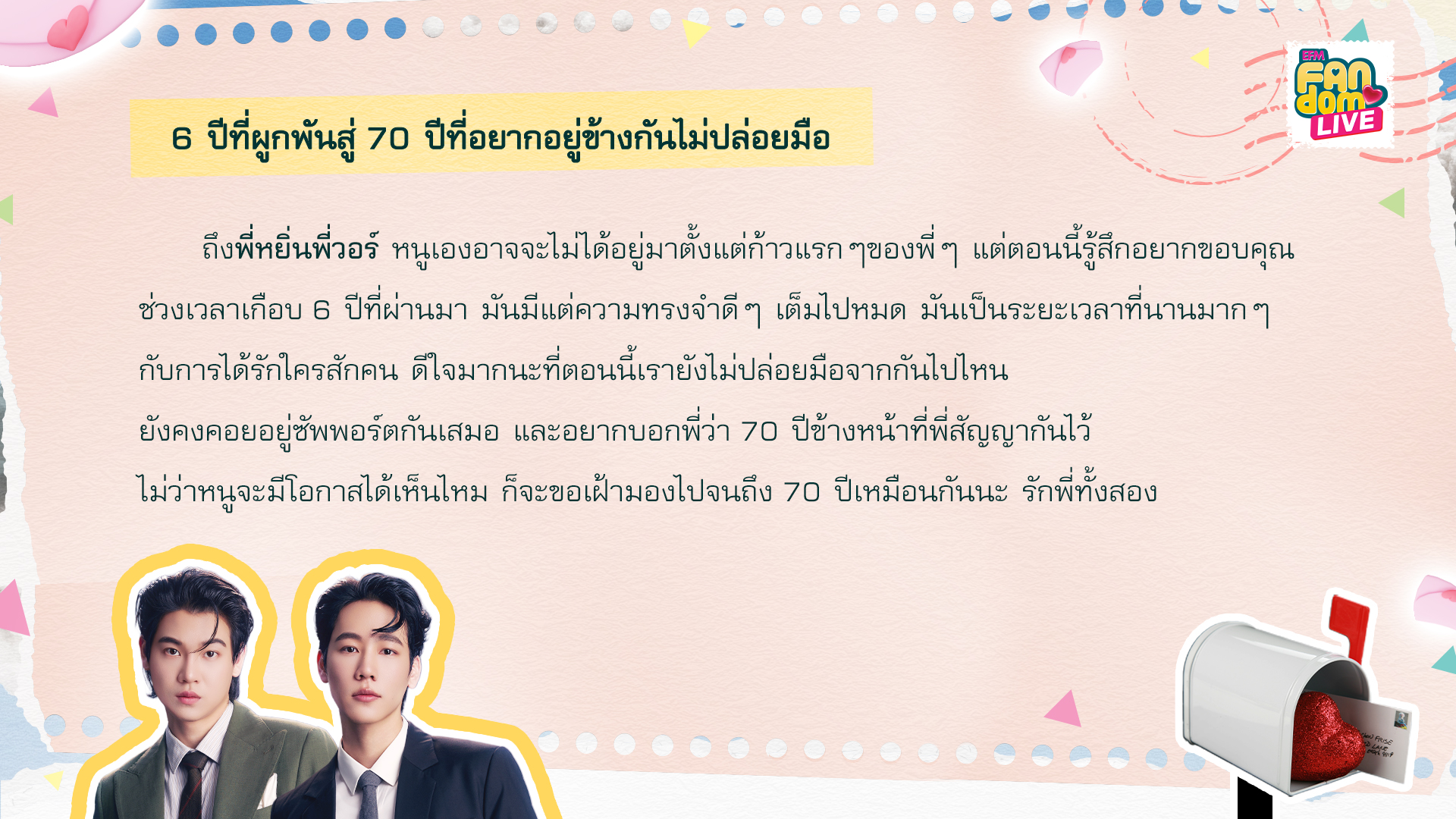 จดหมายฉบับที่ 1 ชื่อจดหมายว่า... 6 ปีที่ผูกพันสู่ 70 ปีที่อยากอยู่ข้างกันไม่ปล่อยมือ