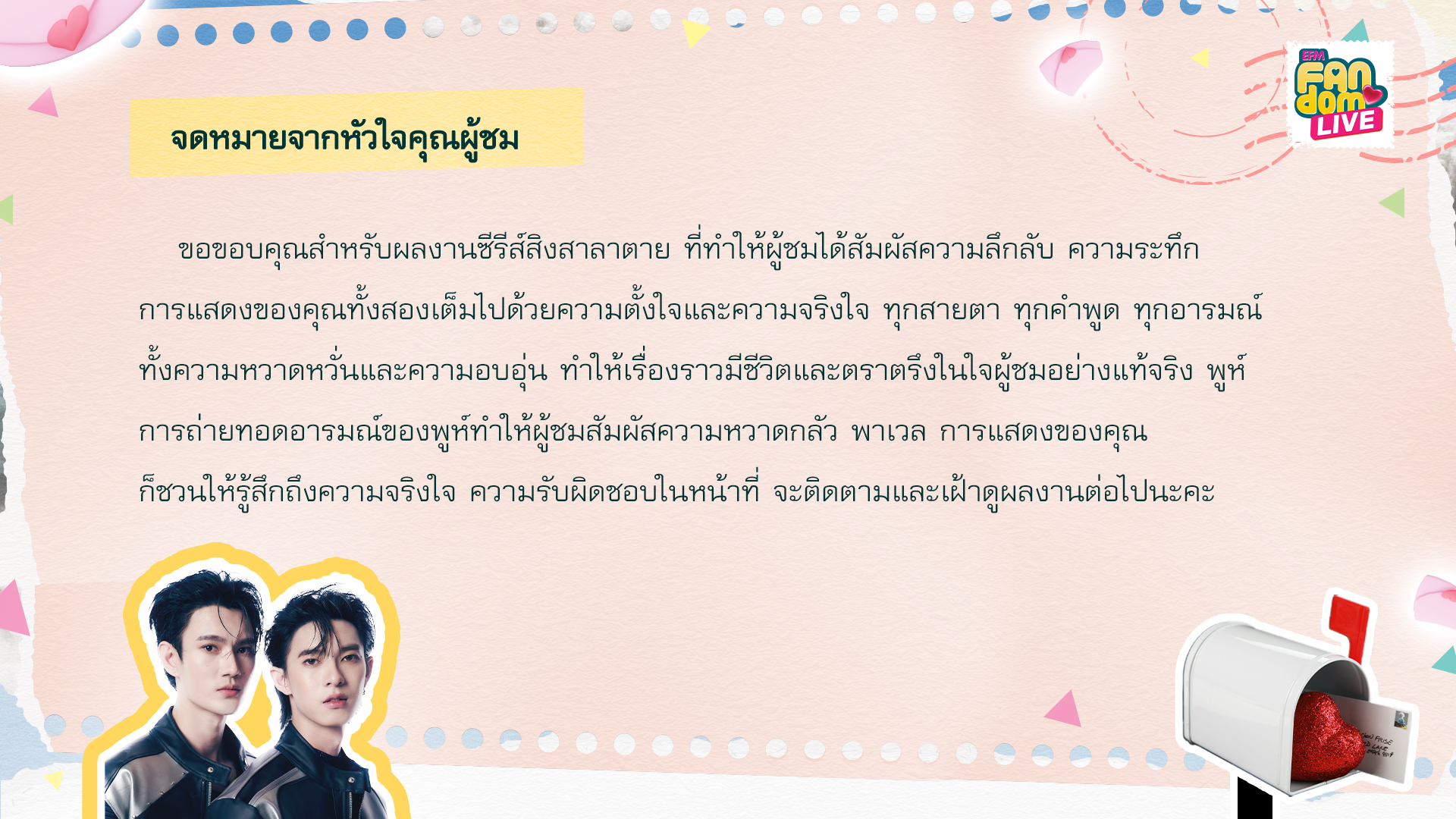 ที่ถูกเลือกมาจากแฟน ๆ ส่งความในใจที่อยากจะบอกกับศิลปิน