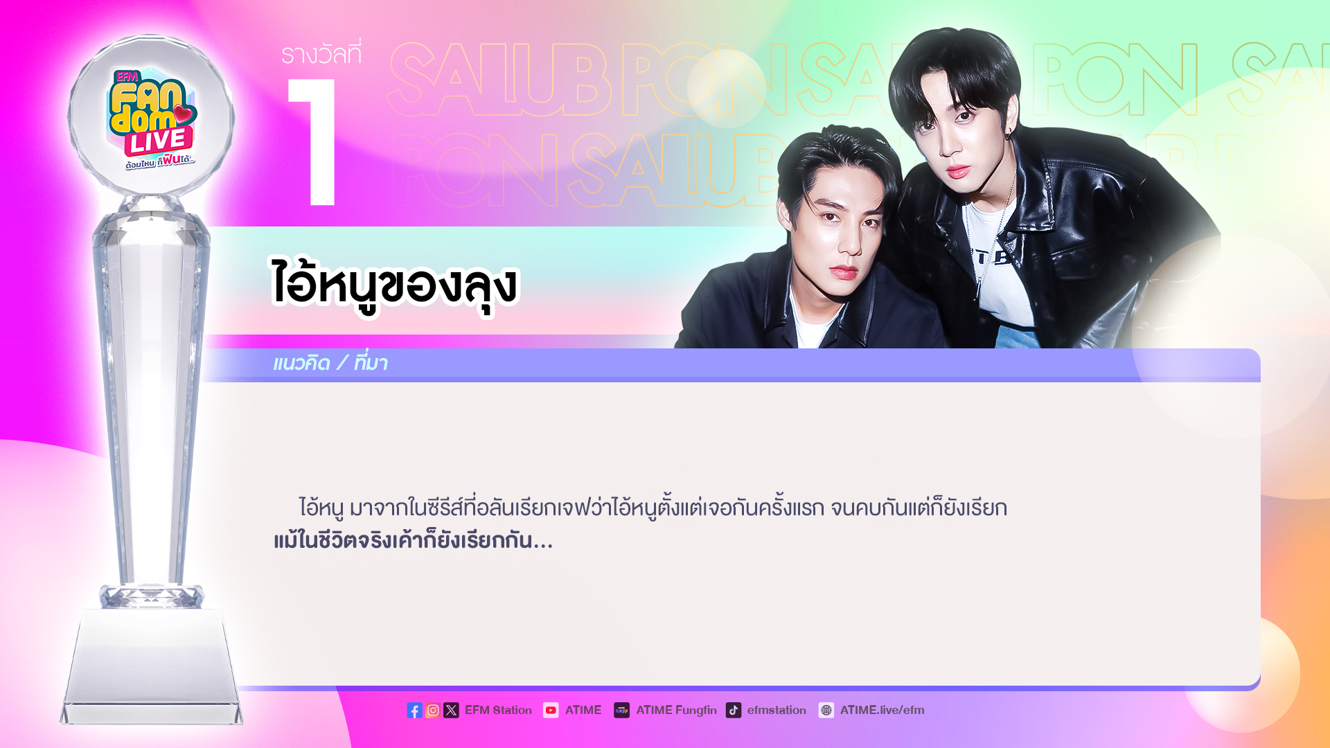 วันนี้ทางรายการ EFM FANDOM LIVE ก็มีเกมให้ “สายลับ - ภณ” เล่นกันด้วย กับเกมที่มีชื่อว่า ‘น้องเจฟ ลุงอลัน Translate’ สนุกสนานกันแน่นอน (เข้าไปชมได้ใน YouTube : ATIME)