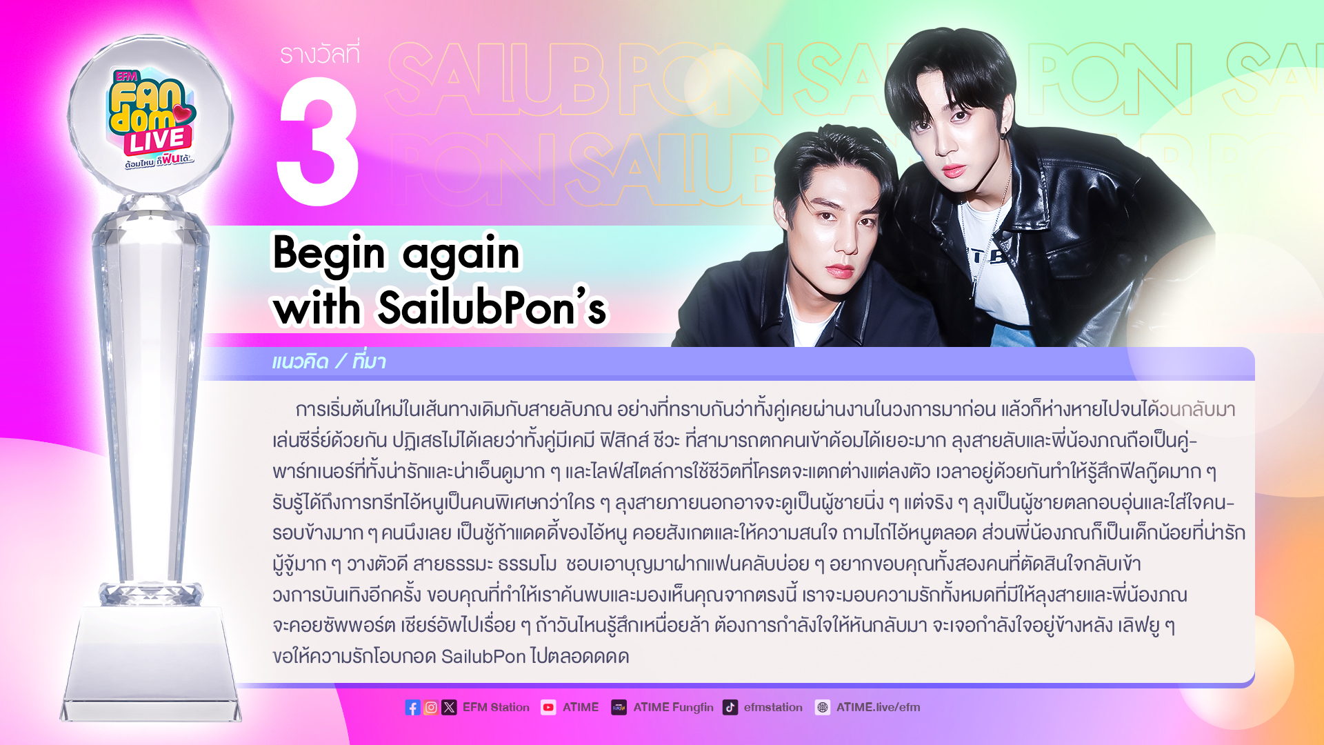 3.ชื่อ/แนวคิด ของรางวัล “Begin again with SailubPon’s”