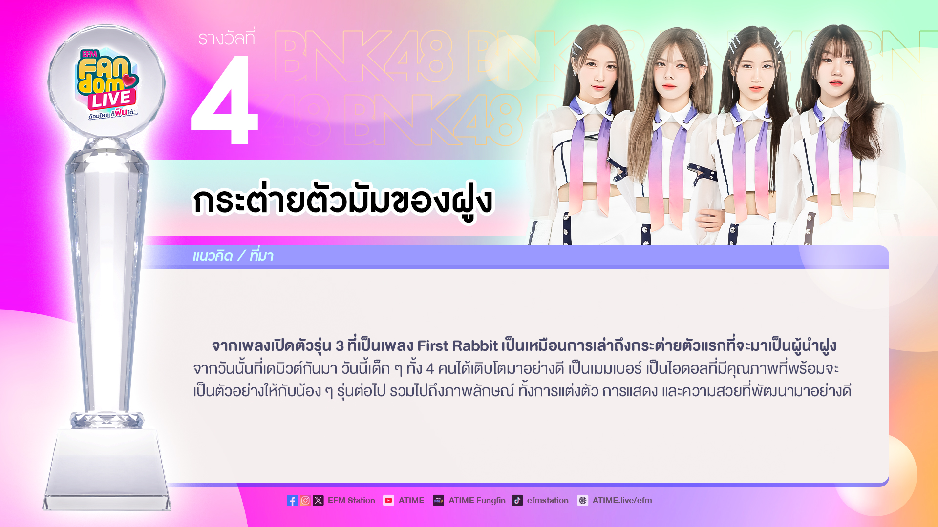 สุดท้ายนี้ EFM FANDOM LIVE ขอขอบคุณ “ฮูพ-แพนเค้ก-ปาเอญ่า-โมเน่ต์ BNK48” ที่มาร่วมพูดคุย สร้างความน่ารัก ความสุขให้กับรายการ และก่อนจะจบรายการกันไป ฝากติดตามซิงเกิลที่ 16 เพลง “Kiss me! (ให้ฉันได้รู้)” สามารถรับชมได้ทาง YouTube : BNK48 หรือสตรีมมิ่งทุกแพลตฟอร์ม และฝากกิจกรรม Cover Dance ส่งได้แล้ว ตั้งแต่วันนี้ถึง 27 มีนาคม 2567 ไปติดตามกันได้เลย