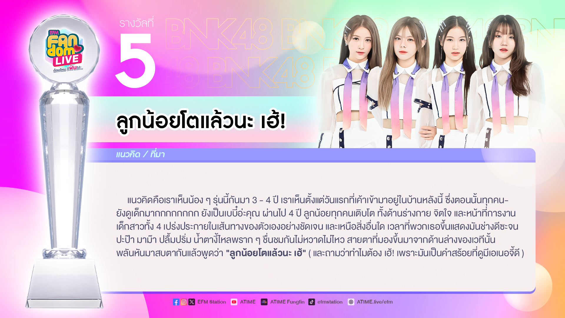 5.ชื่อ/แนวคิด ของรางวัล “ลูกโตน้อยแล้วนะ เฮ้!”