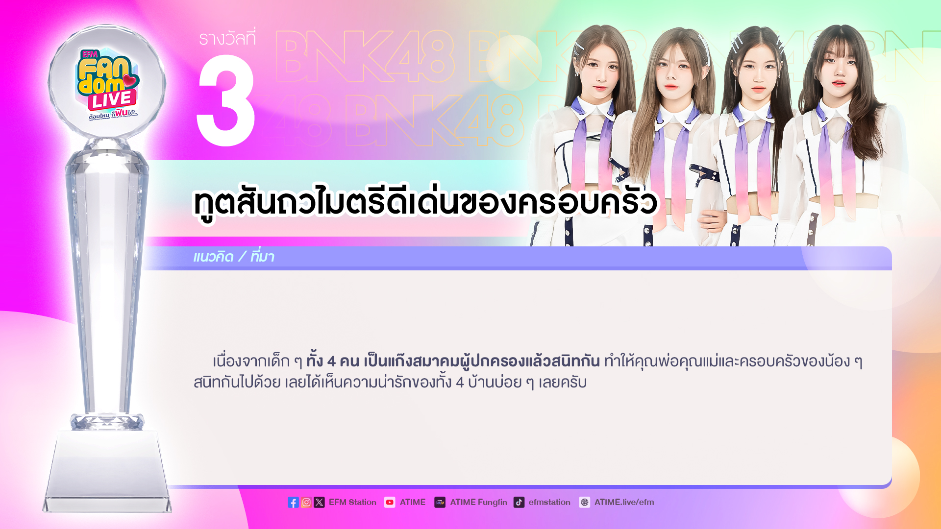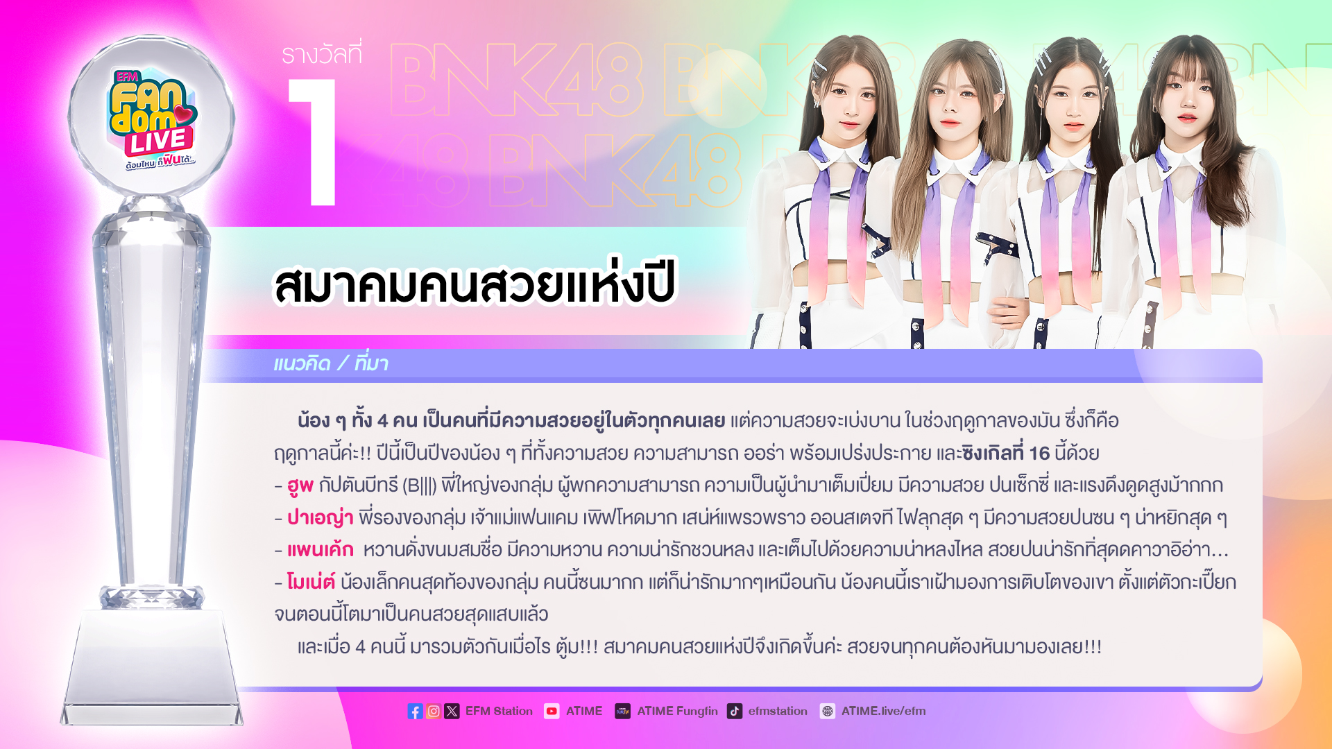 “ฮูพ-แพนเค้ก-ปาเอญ่า-โมเน่ต์ BNK48” ขอบคุณสำหรับรางวัล “สมาคมคนสวยแห่งปี”