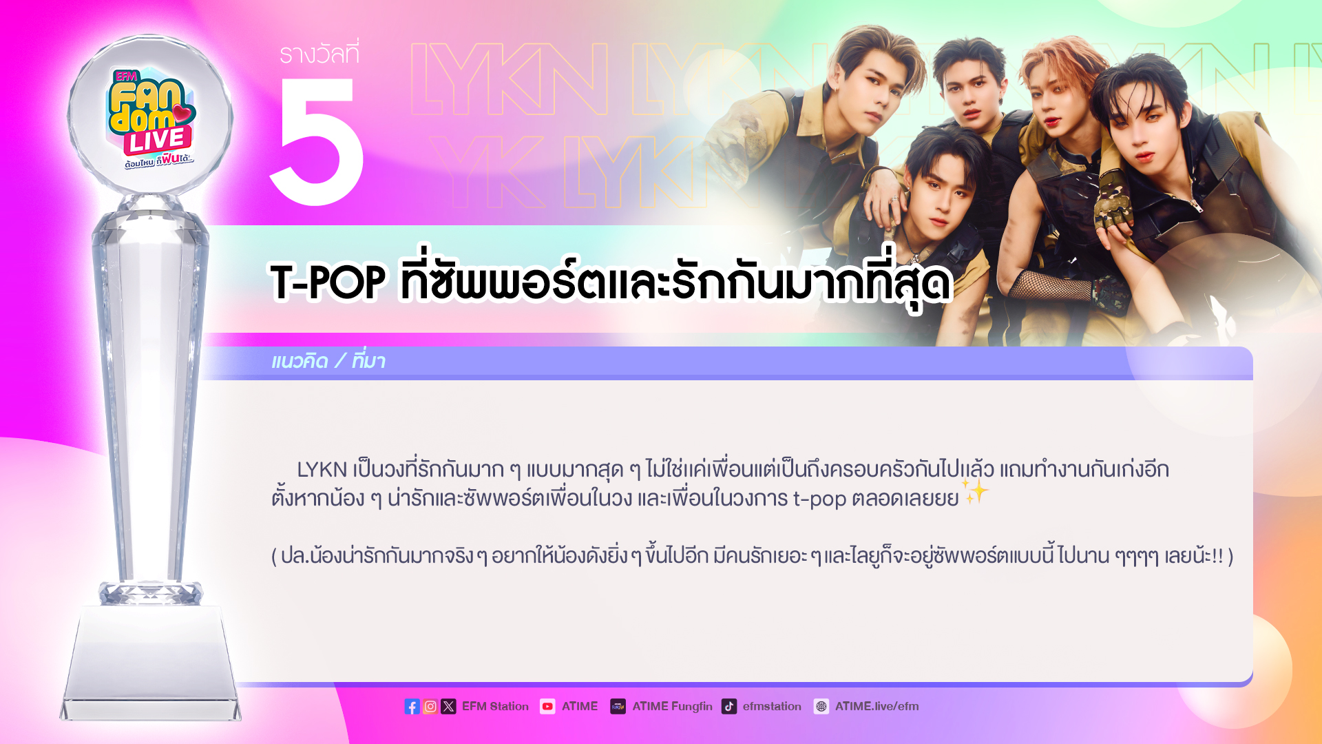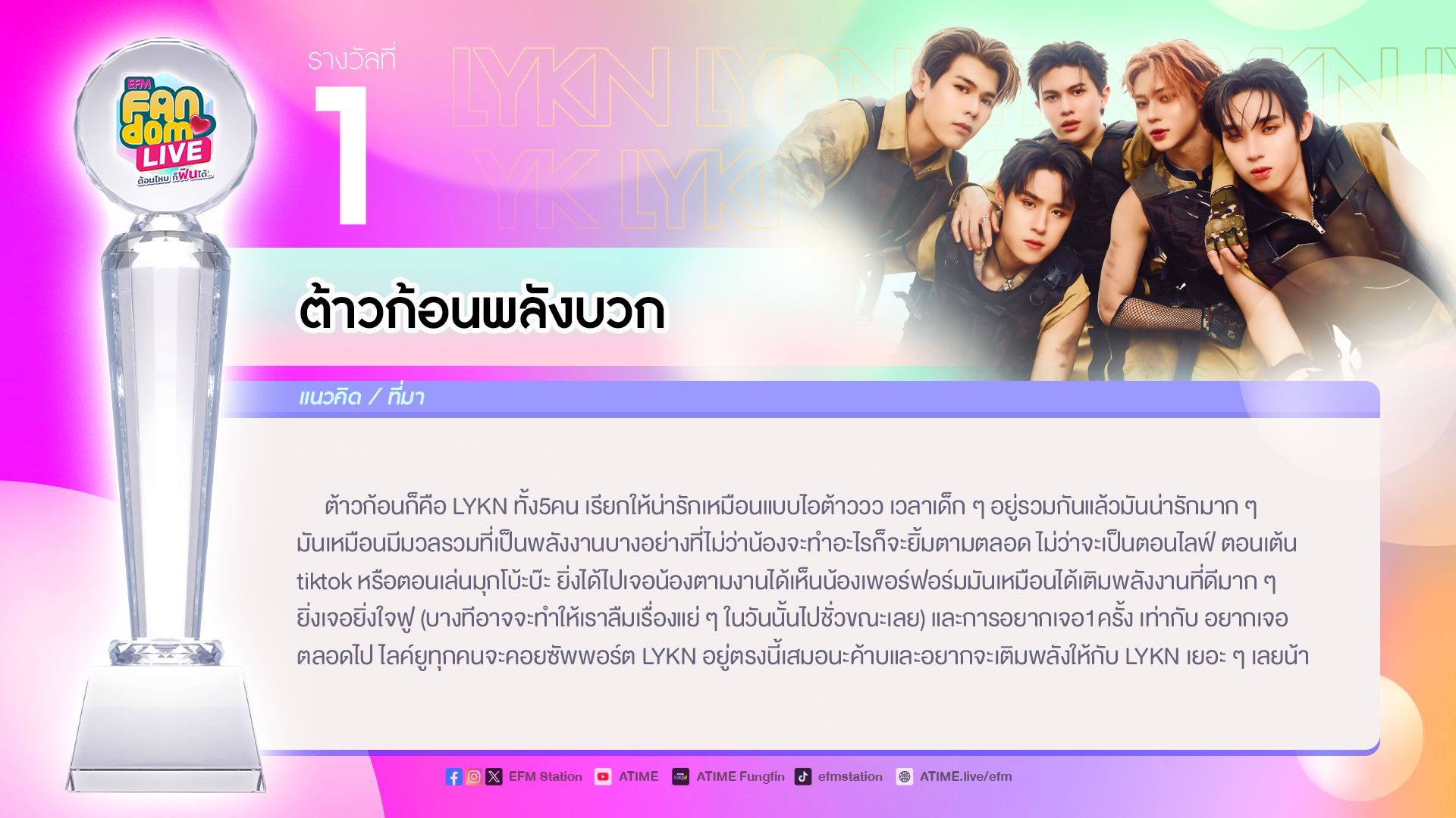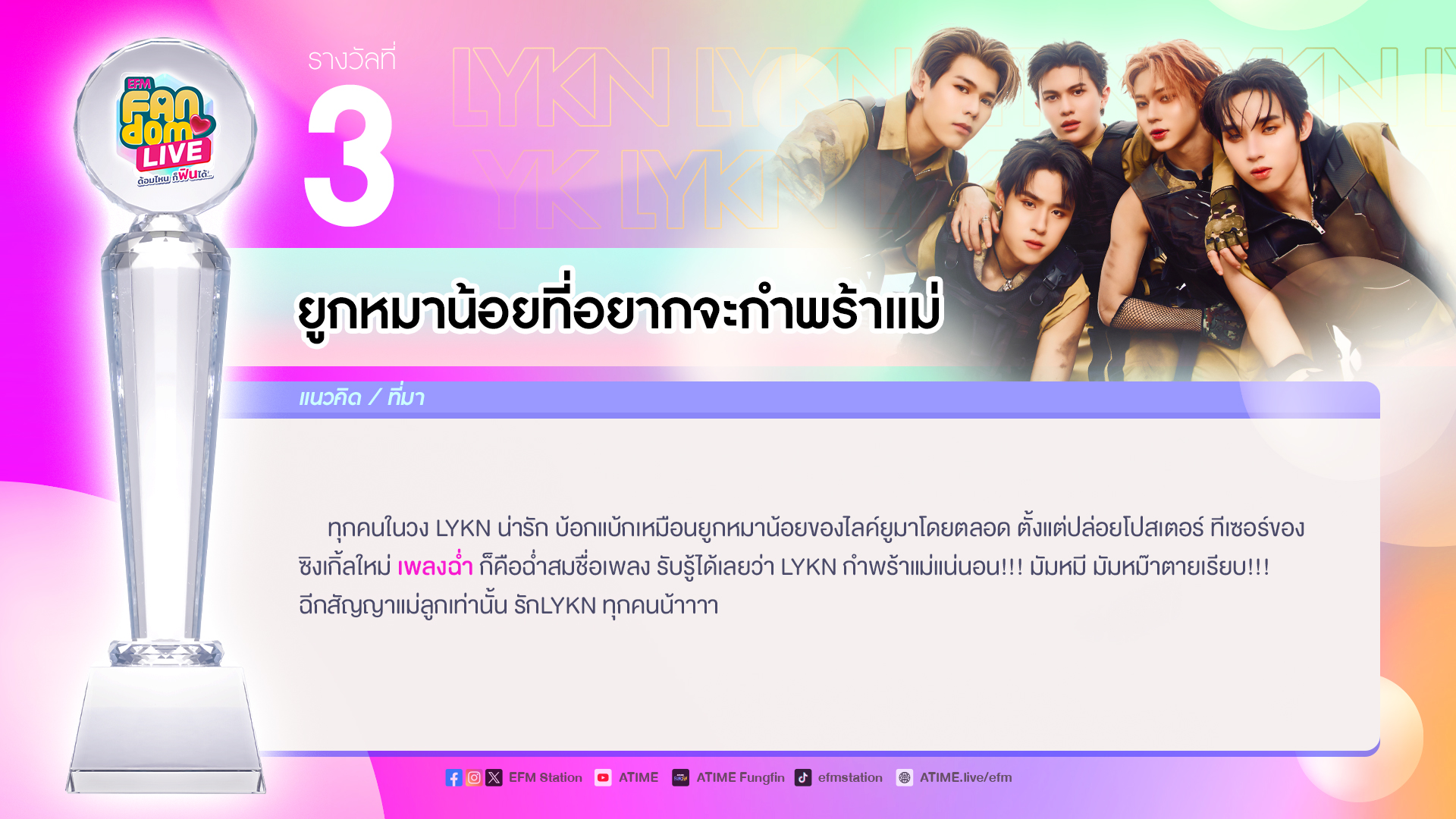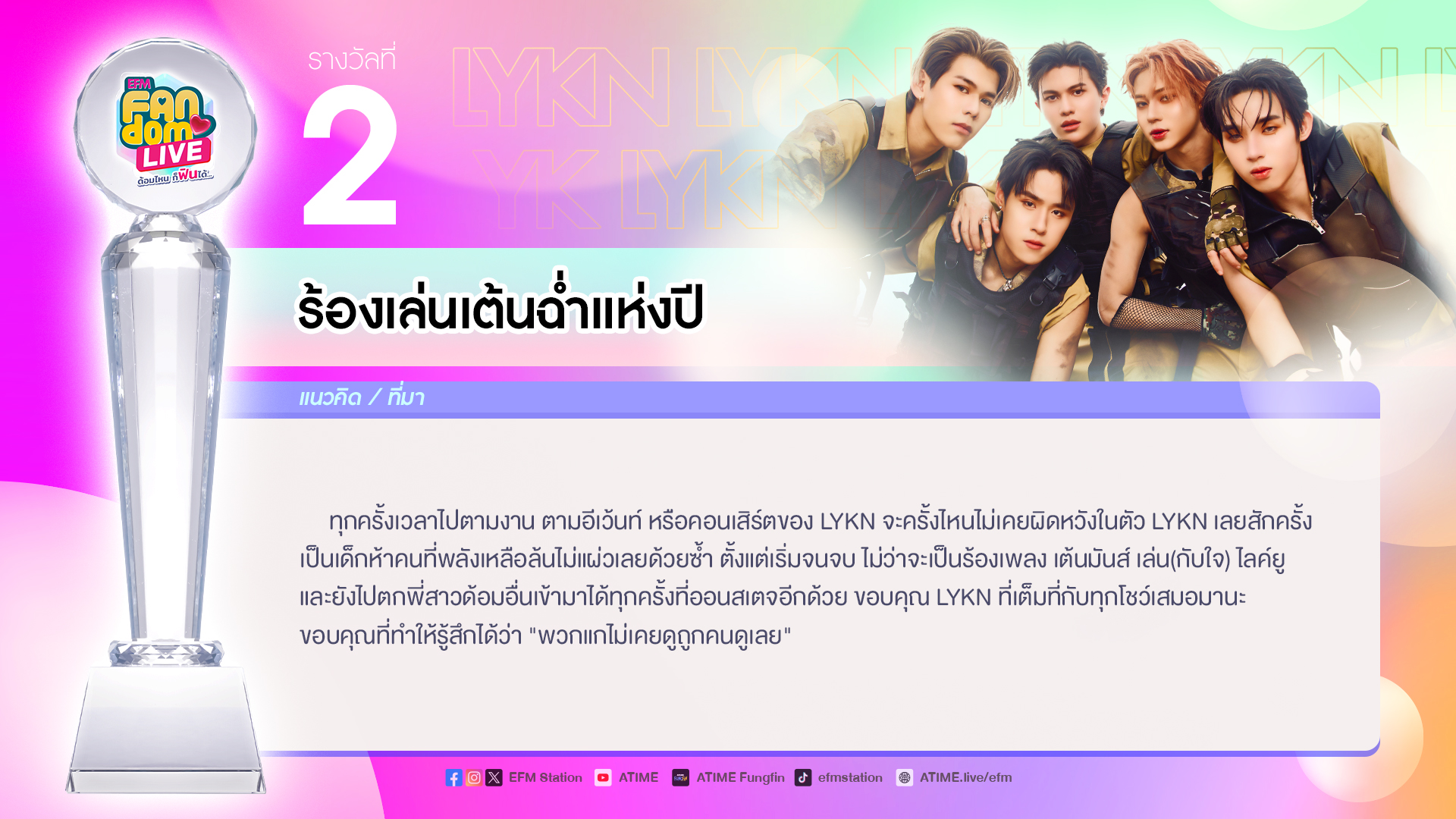 “LYKN” ขอบคุณสำหรับรางวัล “ร้องเล่นเต้นฉ่ำแห่งปี”