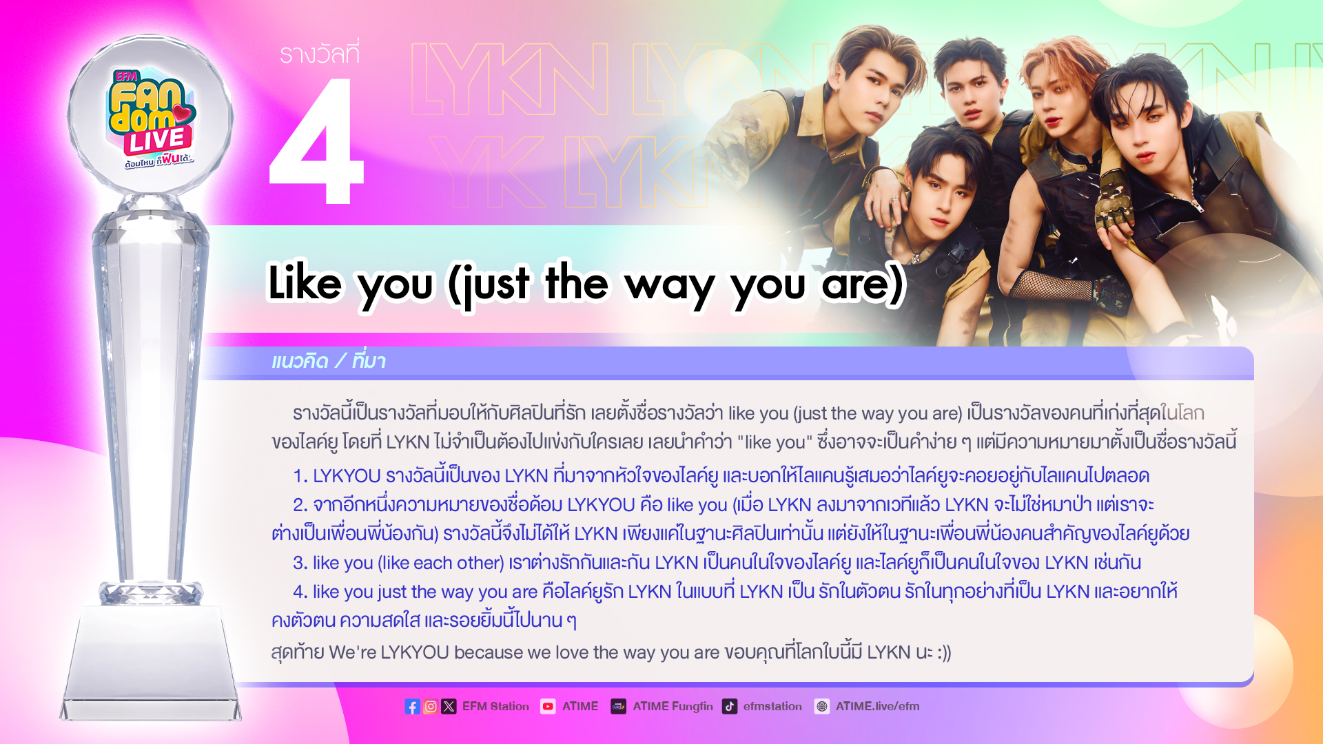 สุดท้าย We're LYKYOU because we love the way you are ขอบคุณที่โลกใบนี้มี LYKN นะ :))