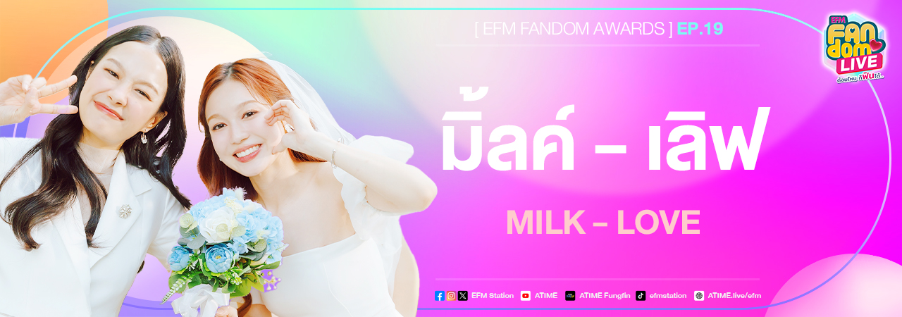สุดท้ายนี้ EFM FANDOM LIVE ขอขอบคุณ “มิ้ลค์ - เลิฟ” ที่มาร่วมพูดคุย สร้างความสุข ด้วยเสียงหัวเราะและรอยยิ้มหวาน ๆ ให้กับทางรายการ และก่อนจะจบรายการกันไป ฝากซีรีส์เรื่องล่าสุดกับ “23.5 องศาที่โลกเอียง” สามารถรับชมผ่านช่อง GMM25 และรับชมย้อนหลังแบบ UNCUT ที่แรกทาง Netflix เวลา 21:30 น. และรวมถึงงาน Final EP แฟนมีตในเร็ว ๆ นี้ ! แฟน ๆ สามารถติดตามความเคลื่อนไหวของทั้งคู่ได้ทุกแพลตฟอร์มทั้ง Instagram / TikTok / X : PANLY.V / LOVERRUKK ไปติดตามกันได้เลย