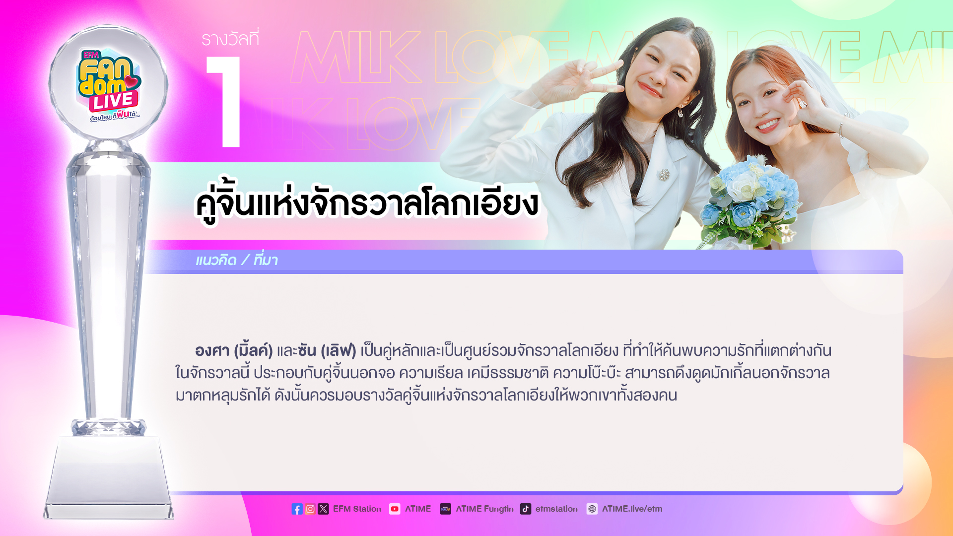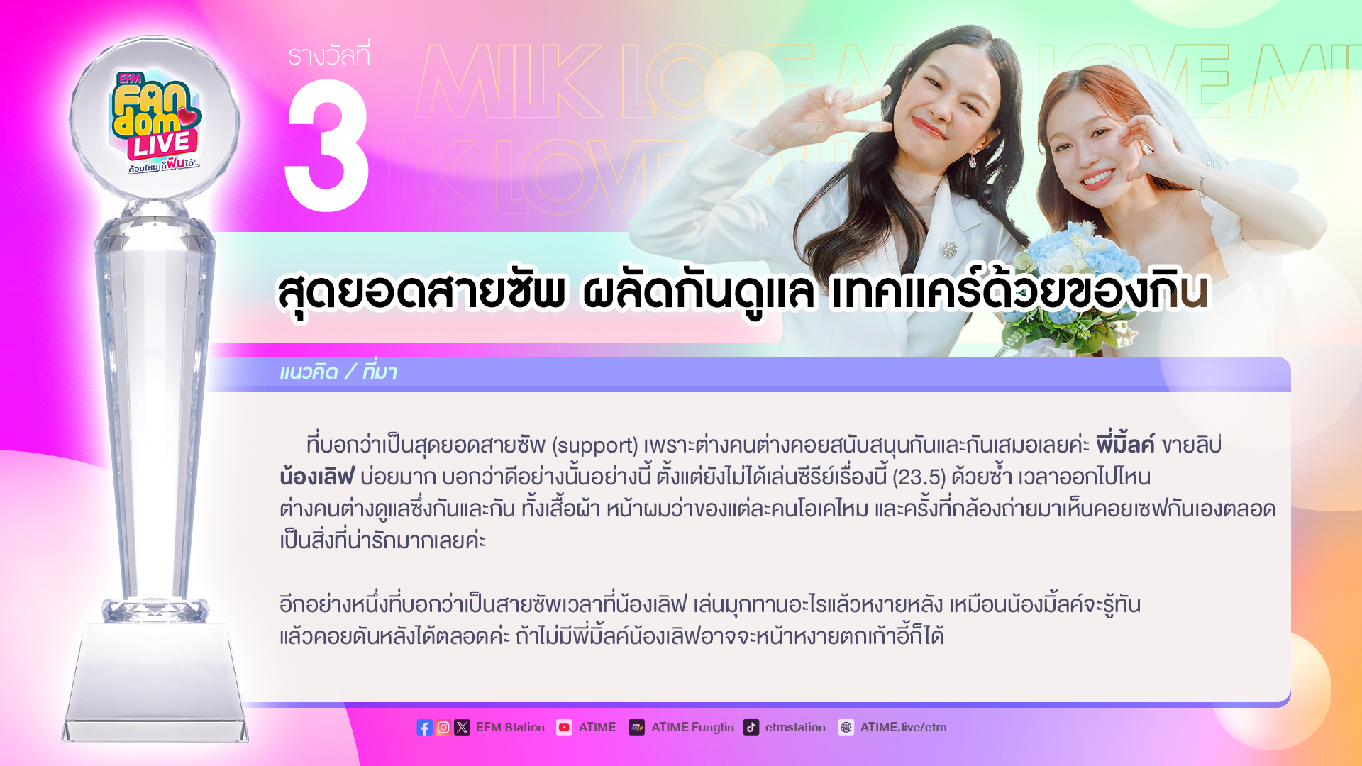 “EFM FANDOM AWARDS รางวัลพิเศษ เพื่อคนพิเศษ” จากแฟน ๆ ที่เสนอเข้ามาและเปิดให้โหวต