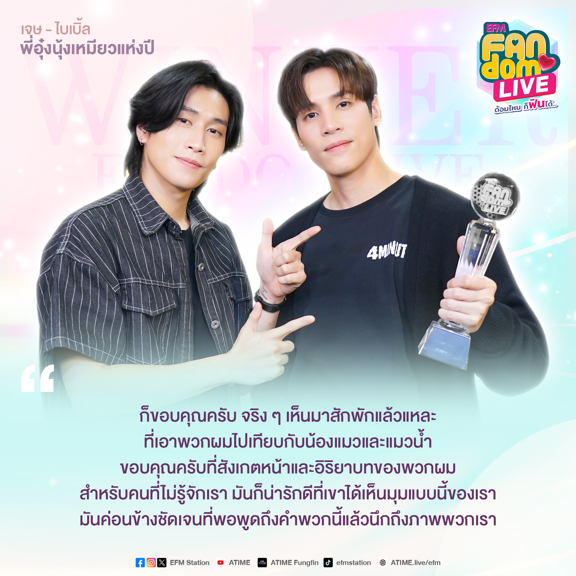 “บิวกิ้น - พีพี” ตัวติดกันจนต้องคว้ารางวัล EFM FANDOM AWARDS สาขา “Best Life Partner” ชื่อรางวัลนี้ไม่เกินจริง! เพราะความสัมพันธ์ของทั้งคู่มันดีจนเกินบรรยาย