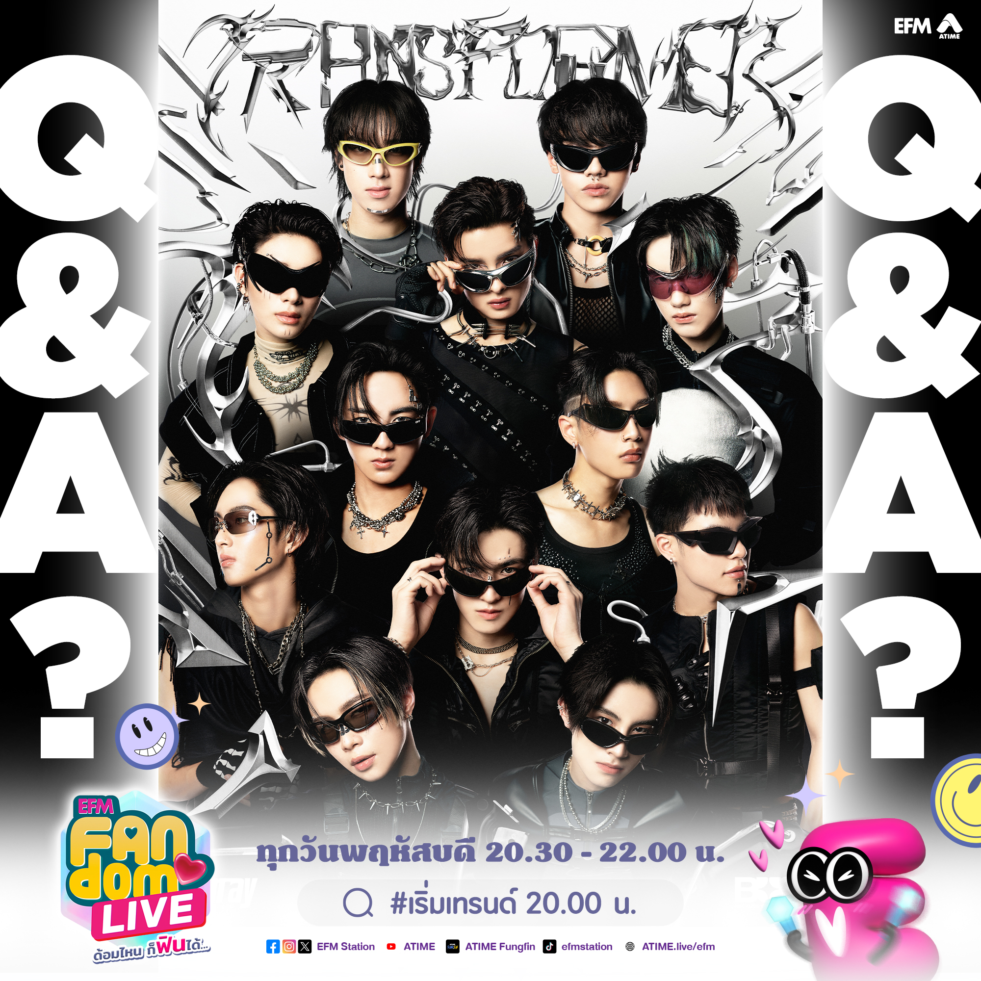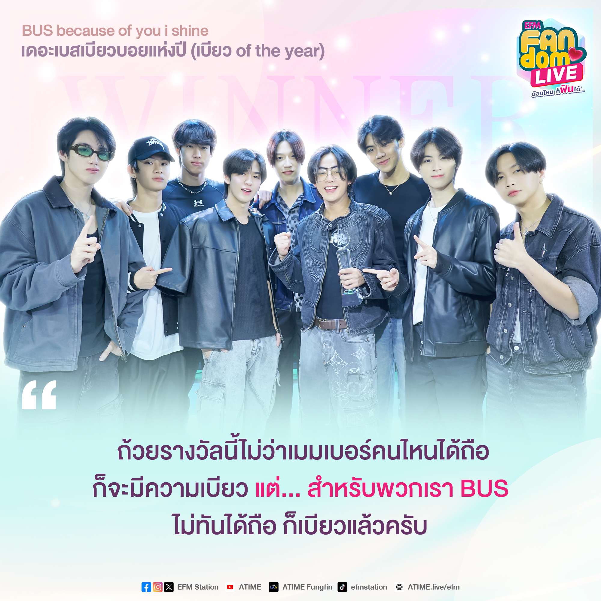รายการ EFM FANDOM LIVE [ 7 พฤศจิกายน 2567] คืนนี้เปิดสตูต้อนรับ “BUS because of you i shine” กับซิงเกิลใหม่ล่าสุด “TRANSFORMER” พร้อมอัพเดตพูดคุยกับ 2 สาว “ดีเจดาว และ ดีเจแนน”