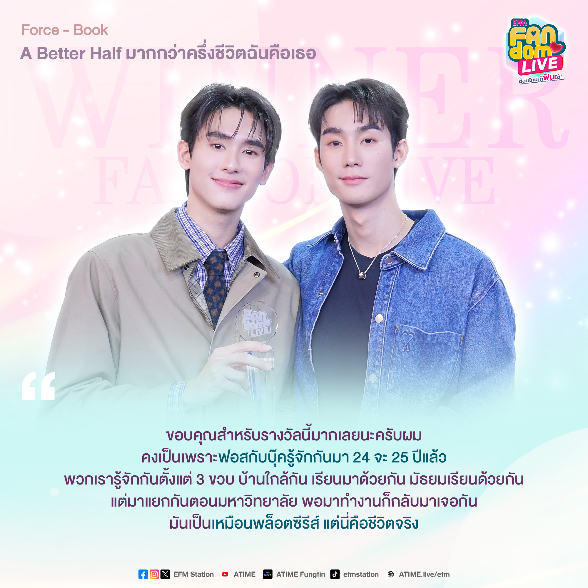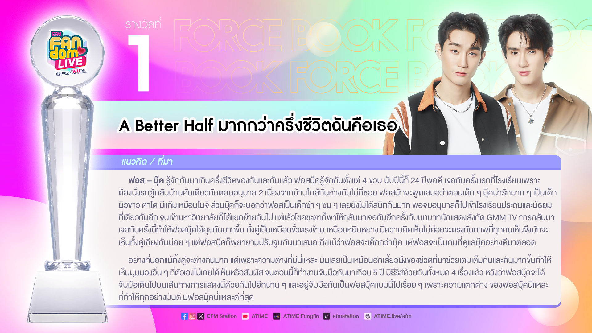 ความรู้สึกของ ฟอส-บุ๊ค ต่อ รางวัล “A Better Half มากกว่าครึ่งชีวิตฉันคือเธอ”
