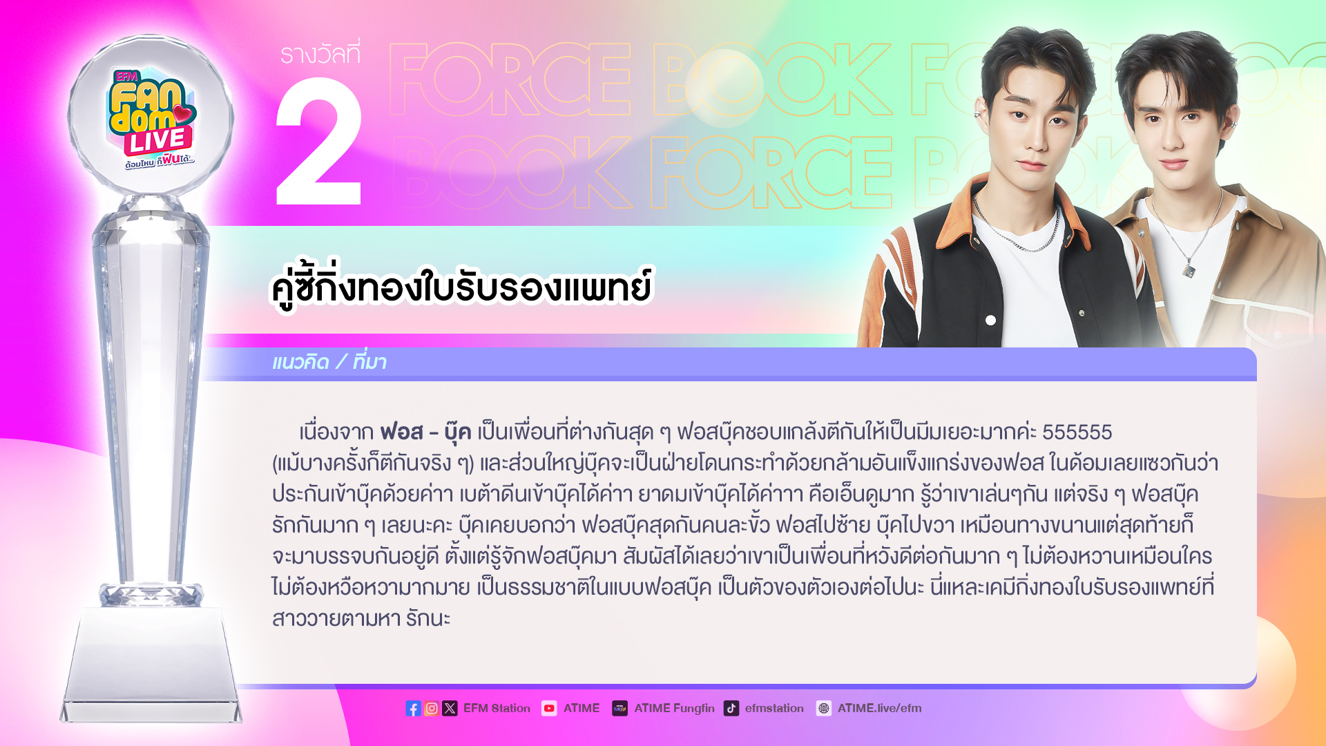 “คู่ซี้ กิ่งทอง ใบรับรองแพทย์” รางวัลที่ได้รับการโหวตเป็นอันดับที่ 2 ของ EFM FANDOM LIVE AWARDS