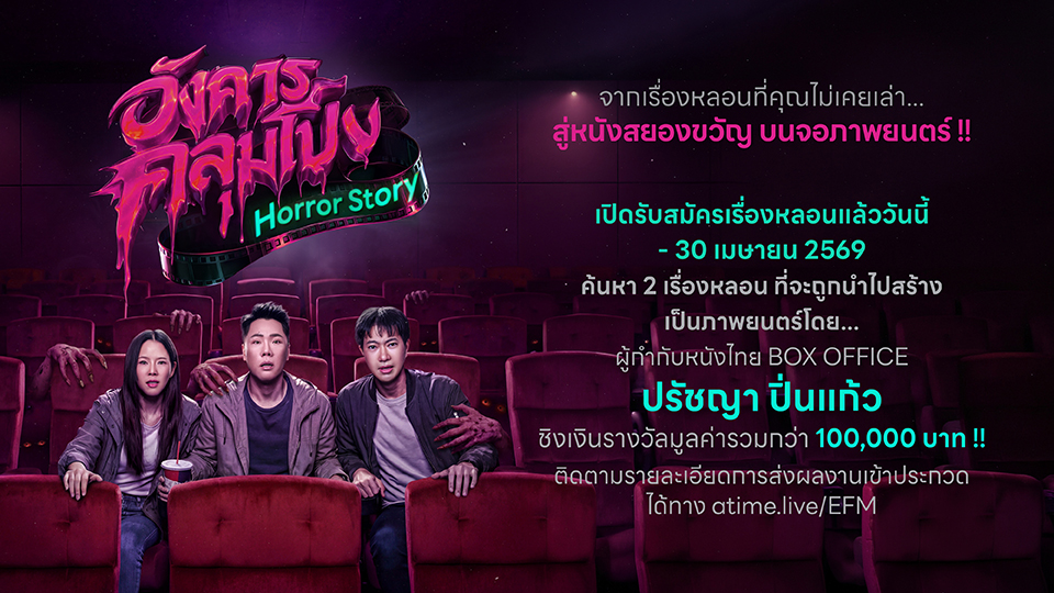 ขอเชิญชวนผู้ที่สนใจ ร่วมส่งเรื่องหลอน เรื่องผี หรือเรื่องลี้ลับที่ไม่เคยถูกเล่า เผยแพร่ หรือออกอากาศในสื่อใดมาก่อนและไม่เป็นเรื่องที่สร้างมาจาก AI Generator ทุกโปรแกรมเพื่อค้นหาเรื่องเล่าคุณภาพ ที่พร้อมต่อยอดสู่การสร้างเป็นภาพยนตร์โดยผู้กำกับภาพยนตร์ไทยระดับ Box Office ปรัชญา ปิ่นแก้วกติกา การร่วมประกวดอังคารคลุมโปง Horror Storyรูปแบบและรางวัลการประกวดคัดเลือก 2 เรื่องหลอนที่โดนใจคณะกรรมการเพื่อนำไปพัฒนาและสร้างเป็นภาพยนตร์พร้อมรับเงินรางวัล เรื่องละ 50,000 บาทวิธีการส่งผลงานถ่ายคลิปหรือโพสต์คลิปเล่าเรื่องหลอนลง TIKTOK ไม่จำกัดรูปแบบการนำเสนอติดแฮชแท็ก #อังคารคลุมโปงHorrorStoryความยาวคลิปไม่เกิน 10 นาทีการส่งผลงานเข้าประกวด สงวนสิทธิ์ 1 คนต่อ 1 เรื่องเท่านั้น**การพิจารณาผลงานยึดจากพล็อตเรื่องเป็นหลัก ยอดวิวหรือยอดการเข้าชม ไม่มีผลต่อการตัดสินของคณะกรรมการ**เกณฑ์การพิจารณา– เรื่องใหม่ ไม่เคยเผยแพร่หรือออกอากาศในสื่อใดมาก่อน– พล็อตเรื่องน่ากลัว มีจุดพีคหรือจุดหักมุมที่ชัดเจน– สอดคล้องกับคอนเซ็ปต์ “จากเรื่องเล่าที่ไม่เคยเล่า…”ระยะเวลารับสมัครเปิดรับผลงานตั้งแต่วันนี้ ถึงวันที่ 30 เมษายน 2569เงื่อนไขการส่งผลงานเข้าประกวด