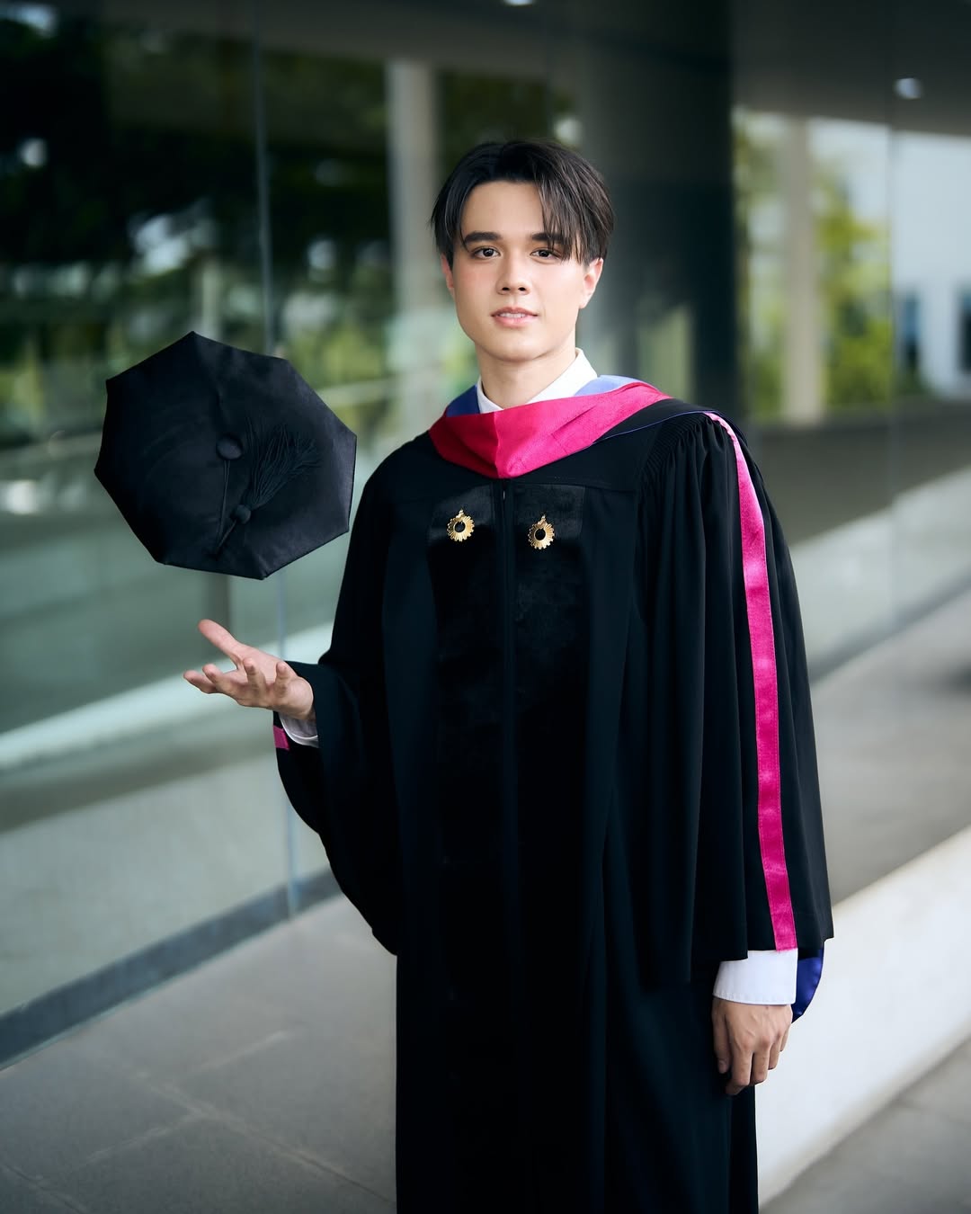 กลายเป็นบัณฑิตใหม่ป้ายแดงอีกคนของวงการบันเทิง สำหรับนักแสดงชื่อดัง ไมกี้-ปณิธาน บุตรแก้ว ล่าสุดออกมาเปิดเผยข่าวดีแบบสด ๆ ร้อน ๆ ว่าเขาได้สำเร็จการศึกษาปริญญาตรีใบแรกจาก คณะนิเทศศาสตร์ สาขาสื่อสารการตลาดดิจิตอล มหาวิทยาลัยรังสิตไมกี้ บอกกับเราว่า เขาใช้เวลาเพียง 3 ปีเท่านั้นในการทำตามความฝันของตัวเองและครอบครัว ยอมรับว่าเป็นช่วงเวลาที่เหนื่อยและยากลำบาก เพราะช่วงโค้งสุดท้ายของการเรียนเป็นจังหวะที่เขามีงานแสดงต้องรับผิดชอบ แต่เมื่อวันนี้สำเร็จแล้ว จึงรู้สึกภูมิใจมาก ๆ เพราะนี่คืออีกหนึ่งสิ่งที่เขาได้ทุ่มเทเวลาและลงมือทำทุกอย่างด้วยตัวเองจริง ๆ“จบแล้วครับ ผมเรียนจบแล้ว (หัวเราะ) แต่ที่ผมงงคือพี่ ๆ รู้กันได้ยังไง เพราะผมเพิ่งเรียนจบเมื่อวาน (5 กันยายน 2567) ปิดจ๊อบไปเมื่อวานเลยครับ อาจารย์แจ้งข่าวดีมาก็ดีใจมาก เพราะผมใช้เวลาเรียนมา 3 ปี ช่วงที่ทำเล่มจบเป็นช่วงที่ผมต้องบาลานซ์ชีวิตมาก ๆ เพราะทำงานด้วย ผมก็อยากทำมันด้วยตัวเอง ความภูมิใจครั้งหนึ่งนะครับ“จริง ๆ ตั้งแต่เริ่มเรียนเป็นช่วงที่ผมก็เริ่มเข้ามาทำงานในวงการบันเทิงแล้ว ผมก็พยายามหาเวลาไปเรียน ซึ่งทางมหาวิทยาลัยรังสิต ก็พยายามให้ความช่วยเหลือในส่วนนี้มาก ๆ อาจารย์รวมถึงเพื่อน ๆ ก็คอยช่วยเหลือ ทุกคนน่ารัก ผมว่าปีสุดท้ายน่าจะเป็นช่วงที่ยากมาก ๆ บางคณะจะไม่มีธีสิส แต่ของผมมี ถึงขั้นเคยคิดจะพักการเรียน แต่ก็กลับมาสู้ ผมเลยอยากจะบอกทุกคนว่าสู้ ๆ นะครับ อย่าดูถูกศักยภาพตัวเองครับ ผมจะเป็นกำลังใจให้”ภาพ : mikepanitan