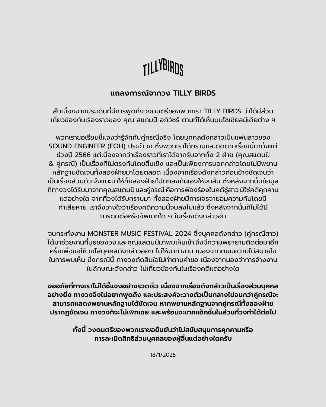 เตรียมระเบิดความมันส์แบบสุดขีด ไปกับวงดนตรีที่กำลังมาแรงแซงทุกทางโค้ง Tilly Birds จากค่าย GeneLab ในเครือ GMM GRAMMY ที่เตรียมสาดพลังดนตรี ขยี้ไอเดียบรรเจิด และพร้อมเขย่าวงการเพลงด้วยไลฟ์คอนเสิร์ต แนวภาพยนตร์ (Cinematic) โดยมีการปรับรูปแบบให้เข้าสถานการณ์ปัจจุบัน ที่จะทำการแสดงสดเสมือนจริงผ่านหน้าจอ การันตีความสนุกแปลกใหม่แบบฉบับ Tilly Birds กับคอนเสิร์ตที่มีชื่อว่า “Is Everything OK?” แฟนเพลงทั่วโลกสามารถชมพร้อมกันได้ใน วันเสาร์ ที่ 22 มกราคมนี้ เวลา 6 โมงเย็นที่ YouTube : GeneLabโดยคอนเสิร์ตในครั้งนี้ Tilly Birds ได้ฉีกกฏ Virtual Concert แบบเดิมๆ ใส่ไอเดียที่แสดงตัวตนออกมาเป็นคอนเซ็ปต์ได้อย่างชัดเจน โดยร้อยเรียงเพลงในอัลบั้มให้มีเรื่องราวต่อเนื่องกันจนออกมาเป็นรูปแบบของภาพยนตร์ (Cinematic)“เราจัดหนักจัดเต็มทั้งเบื้องหน้าและเบื้องหลัง ไม่ว่าจะเป็นเรื่องการทำเพลง ตั้งแต่ขั้นตอนคัดเลือกนักแสดง กำกับ แสดง ภาพ เสียง คอสตูม กราฟฟิก ตลอดจนภาพที่ใช้ในการโปรโมท และความท้าทายล่าสุดที่พวกเราได้ทำคือทำงานเบื้องหลัง คอนเสิร์ตครั้งนี้ด้วยตัวพวกเราเองทั้งหมดครับ ครั้งนี้เรียกได้ว่าเป็น Cinematic Virtual Concert (คอนเสิร์ตเล่าเรื่องราวแบบหนัง) ซึ่งเป็นสิ่งใหม่ในเมืองไทยมากๆ เป็นจุดเริ่มต้นของการสร้างสรรค์ความแปลกใหม่ให้กับวงการเพลงไทยอย่างแน่นอนครับ”ทั้งนี้หนุ่มๆ Tilly Birds ยังทิ้งท้ายไว้ว่า คอนเสิร์ต “Is Everything OK?” เป็นหนึ่งในโปรเจกต์ที่ใหญ่ที่สุดของวงที่เคยทำมา มีความแปลกใหม่ และความแตกต่างไปจากเดิมบ้าง ซึ่งเราได้พยายามทำทุกอย่างให้เป็น Tilly Birds มากที่สุดครับ อยากให้ทุกคนมาชมกันเยอะๆ จะได้เห็นถึงความเป็นพวกเรา และหวังว่าจะชอบกันนอกจากนี้ทางวงยังแอบกระซิบมาว่า คอนเสิร์ตนี้จะมีเซอร์ไพร์สุดพิเศษที่ทุกคนไม่คาดคิดมาก่อนแน่นอน เตรียมไปทำความรู้จักตัวตนของ Tilly Birds ให้ลึกขึ้นกว่าเดิมไปพร้อมกันในรอบ Premiere วันเสาร์ ที่ 22 มกราคมนี้ เวลา 6 โมงเย็นที่ YouTube : GeneLabภาพ : GeneLab