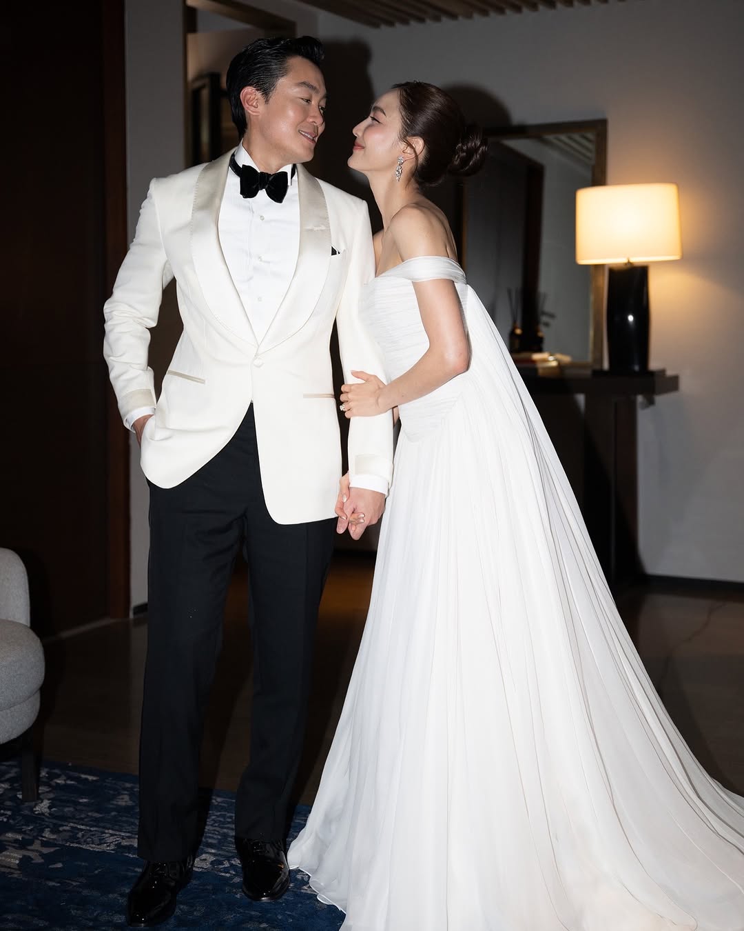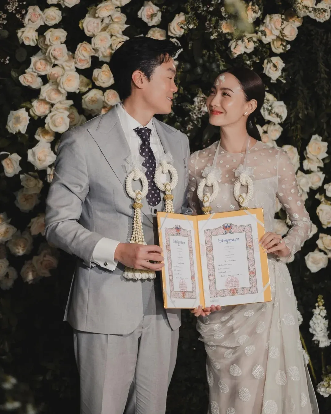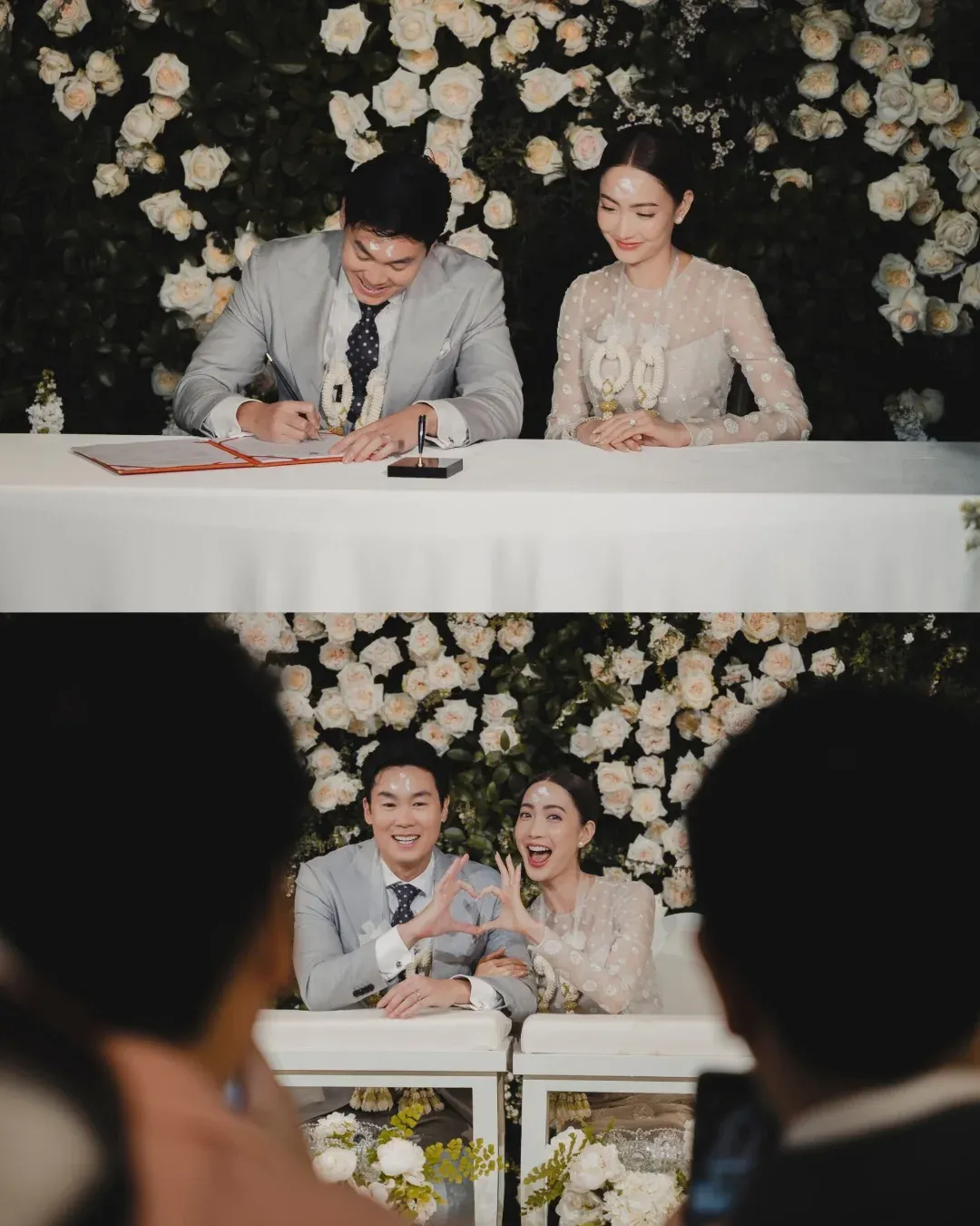 “วันนี้จดทะเบียนสมรสเลย เพราะเราตั้งใจอยากให้ทุกขั้นตอนจบในวันเดียว วันนี้ฤกษ์ดีด้วยค่ะ ตอนแรกแต้วก็กังวลว่าจะเหนื่อยแต่ก็ได้รับกำลังใจและคำอวยพรจากทุกคน วันนี้เลยเป็นวันที่มีค่า ไม่เหนื่อยเลยค่ะ (มีคำพูดอะไรที่เป็นการสัญญาระหว่างเราไหม) ก่อนหน้านี้เราก็ใช้ชีวิตรักกันอยู่แล้ว แต่วันนี้ที่เราแต่งงานกัน มันจะเป็นแชปเตอร์ที่เราทั้งสองคนต้องออกเดินทางสร้างไปด้วยกัน เราพูดกันตลอดว่าเราจะดูแลกัน และจะเป็นแบบนี้ไปทุกวัน”