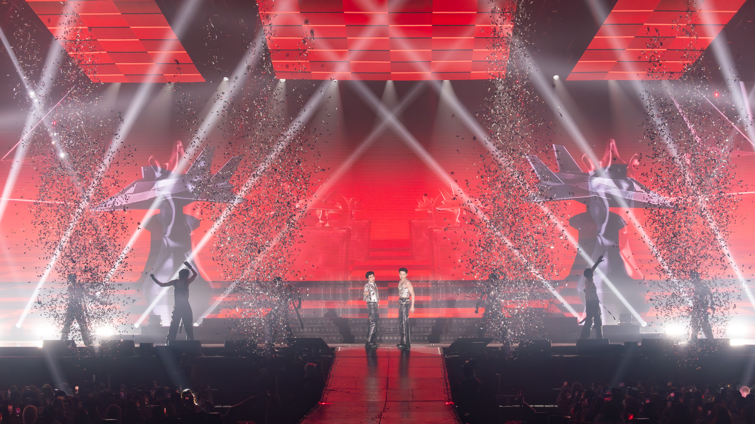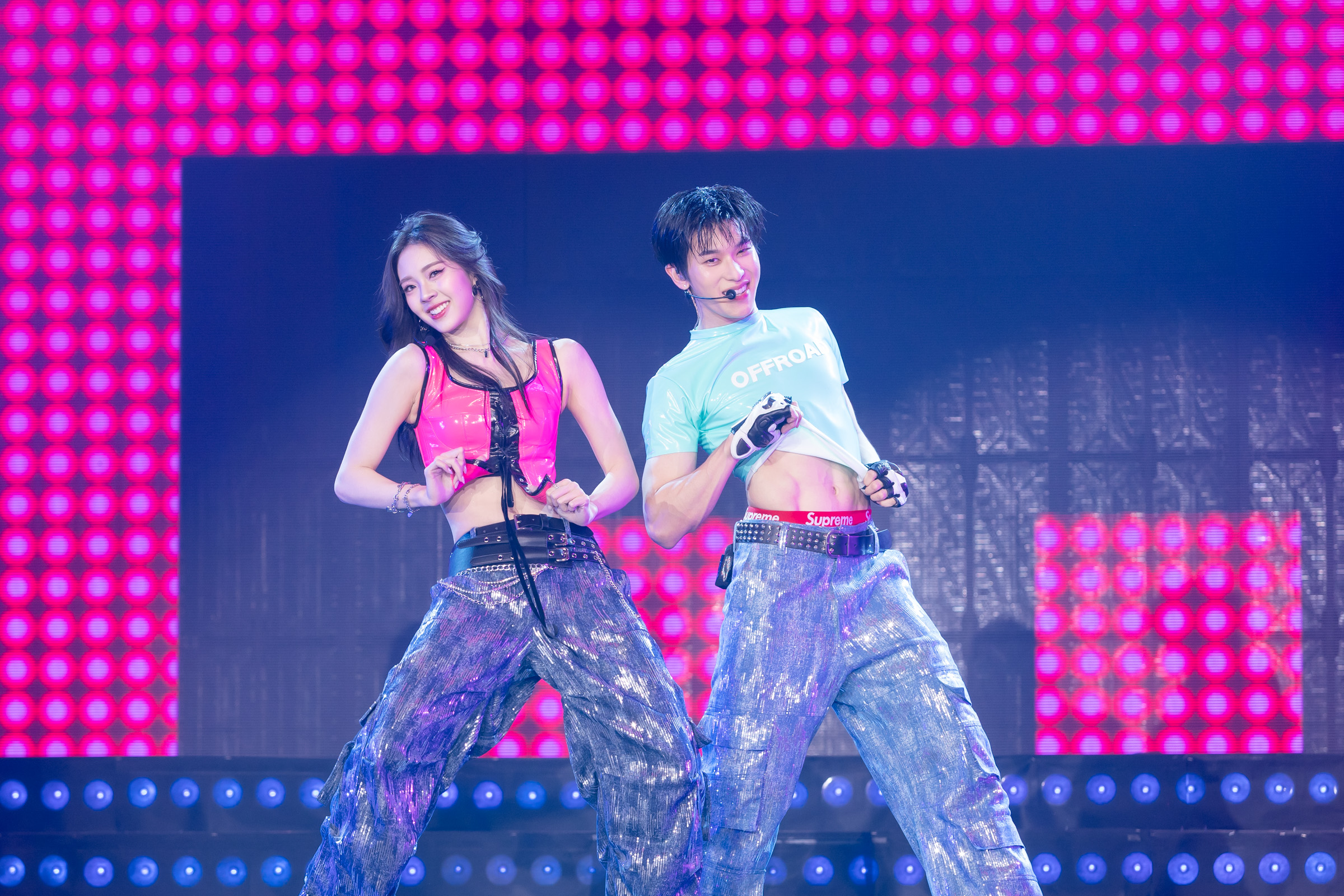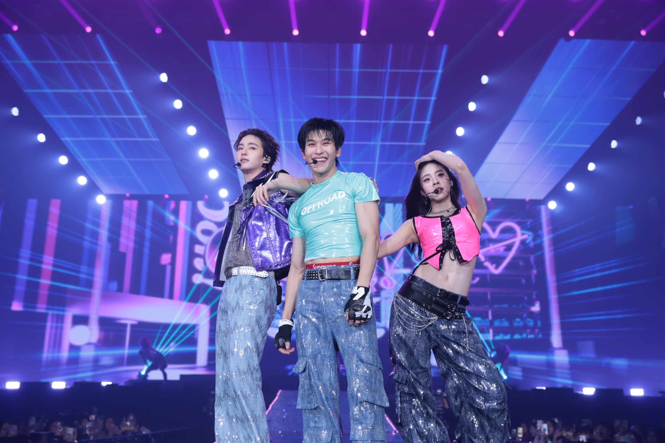 ตั้งแต่เปิดเวทีก็สร้างความตื่นตาตื่นใจ เมื่อทั้งสองปรากฏตัวพร้อมเครื่องบินจำลอง ท่ามกลางเสียงกรี๊ดที่กึกก้อง ก่อนจะพาแฟน ๆ ลั้นลาต่อเนื่อง กับพลังการเต้นที่ทำเอาฮอลล์สะเทือน และไม่ลืมมอบโชว์สุดพิเศษที่เตรียมมาเพื่อแฟนด้อมโดยเฉพาะ
