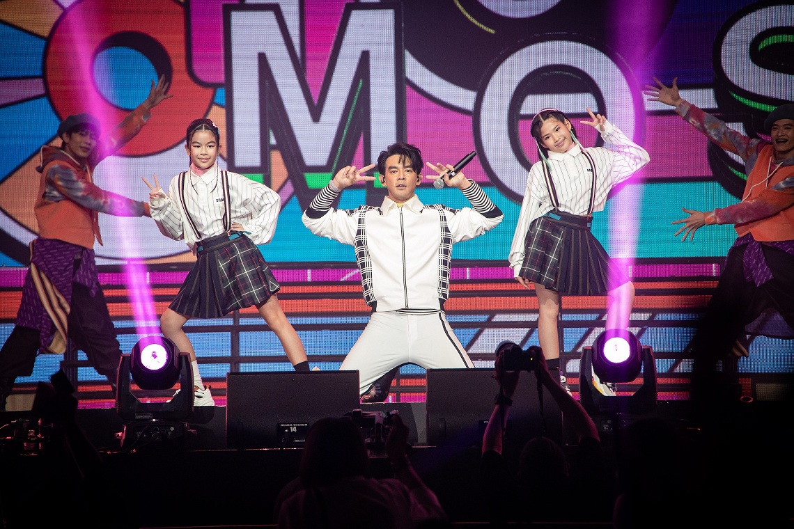 เริ่มต้นก็จัดเต็มความจุกด้วยการให้คนดูทิ้งเก้าอี้แล้วลุกมาแดนซ์กันตั้งแต่เพลงแรกกับเซ็ทศิลปินตัวท็อป นับหนึ่งที่ มอส ขอเปิดเวทีด้วยเพลงแดนซ์จัดหนักอย่าง ‘เหลวไหล’, ‘สลัดสะบัด’, ‘ด้วยรักและปลาทู’ เท่านั้นไม่พอเสิร์ฟเซอร์ไพรส์กันต่อด้วยการชวนลูกสาวสายแดนซ์อย่าง น้องโสน และเพื่อนซี้อย่างน้องนาวา ลูกสาว อ้อม พิยะดา ออกมารับบทแดนซ์เซอร์ประกบสองข้างโชว์ท่าเต้นสุดเป๊ะในเพลง ‘เชื่อเถอะครับ’ ที่เรียกเสียงกรี๊ดแบบตกแฟนคลับคุณพ่อไปได้เต็มๆ