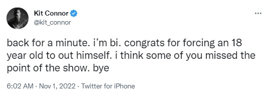 Kit Connor นักแสดงวัยรุ่นชาวอังกฤษที่โด่งดังจากบทนำในซีรีส์ Heartstopper ตัดสินใจออกมาโพสต์ข้อความผ่านทวิตเตอร์ส่วนตัว เพื่อเปิดเผยว่าตนเองเป็น Bisexual หรือผู้มีรสนิยมรักร่วมเพศ ซึ่งการออกทวิตข้อความครั้งนี้เกิดขึ้นหลังจากที่เขาต้องแบกรับแรงกดดันจากแฟนคลับบางกลุ่ม ที่พยายามกล่าวหาว่าเขาแกล้งทำเป็น LGBTQ+ เพื่อเอาใจแฟนคลับ