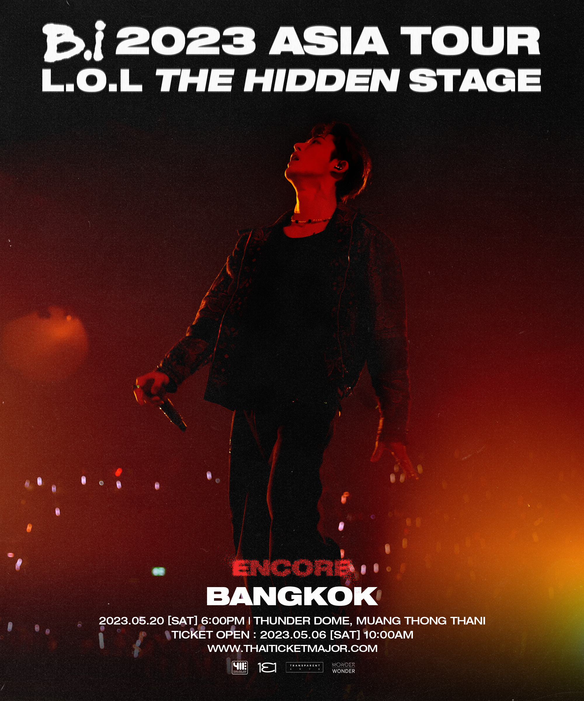 เรียกว่าปิดฉากฉ่ำๆ ตามแบบฉบับตัวแด๊ด เมื่อศิลปินหนุ่มไอดอลโปรดิวเซอร์คนเก่ง “บีไอ” (B.I) หรือ “คิมฮันบิน” (KIM HAN BIN) เลือกปักหมุดไทยแลนด์เป็นประเทศปิดจบเอเชียทัวร์ “บีไอ 2023 เอเชีย ทัวร์ [แอล.โอ.แอล เดอะ ฮิดเดน สเตจ] อังกอร์ อิน แบงคอก” (B.I 2023 ASIA TOUR [L.O.L THE HIDDEN STAGE] ENCORE IN BANGKOK) ในวันที่ 20 พฤษภาคมที่ผ่านมาเสิร์ฟโชว์ไฟลุกระดับตัวพ่อให้เหล่าไอดี (ชื่อแฟนคลับของ B.I) ชาวไทยกรี๊ดกันสุดเสียง! เปิดเวทีด้วยเพลง BTBT เรียกเสียงเชียร์ที่กระหึ่มลั่นฮอลล์ ราดน้ำมันเติมเชื้อเพลิงความร้อนแรงเข้าไปอีกกับเมดเลย์ 3 เพลงรวดทั้ง BE I, ONE AND ONLY (돗대) และ Waterfall อัดแน่นทุกตัวโน้ต เพอร์ฟอร์แมนซ์เป๊ะๆ ปังๆ ก่อนจะกล่าวทักทายไอดี “What’s up Bangkok ดีใจที่ได้เจอทุกคนอีกครั้งนะครับ ผม B.I ครับ ขอบคุณทุกคนมากๆ เลยที่มาคอนเสิร์ตอังกอร์ของผมกันเยอะขนาดนี้ ประเทศไทยร้อนแรงเสมอเลย สมแล้วจริงๆ มาทีไรก็รู้สึกได้ตลอดเลยว่าทุกคนรู้วิธีการที่จะสนุกกับคอนเสิร์ต ขอบคุณที่มาหากันในวันนี้นะครับ และวันนี้เป็นวันสุดท้ายของเอเชียทัวร์คอนเสิร์ตแล้วจริงๆ ผมก็จะตั้งใจทำให้ทุกคนสนุกสุดๆ ไปเลยในวันนี้นะครับ หวังว่าทุกคนจะสนุกไปด้วยกันและวันนี้จะอยู่ในความทรงจำของทุกคนไปนานๆ เลย”หลังจากที่พูดคุยกัน ดนตรีสนุกๆ ดังขึ้น ทั้งเพลง Alive, Flame, Illusion (꿈결) และ Lover ปลุกพลังอันร้อนแรงอย่างต่อเนื่อง เหล่าไอดีเองก็สร้างเรื่องสนุกสุดตัวจนธันเดอร์โดมลุกเป็นไฟ ต่อกันที่เซ็ตเพลงคิวต์ๆ อย่าง GRAY (비 온 뒤 흐 림) เพลงจังหวะน่ารัก และ Remember me (역겹겠지만)เนื้อร้องสุดอ้อน จากนั้นเราก็ได้เห็นท่าเต้นตามสไตล์คนคูลๆ ในเพลงGot it like that กับท่อนคอรัสติดหูติดใจที่แฟนๆ ร้องตามกันได้ทั้งฮอลล์ แล้วฮันบินก็กลับขึ้นเวทีอีกครั้งพร้อมเพลง Daydream (긴 꿈)ลุคสดใสในร่างน้องต๋า แฟนเซอร์วิสตัวพ่อลงไปใกล้ชิดกับไอดีในเพลงTangerine และ NERD ยืนยันเลยว่าทั่วถึงทุกโซน ก่อนจะกลับขึ้นเวทีด้วยเพลง STAY เพลงที่สื่อสารกันว่าพวกเราจะอยู่เคียงข้างกันแบบนี้ตลอดไปหลังจากแวะพักสักนิด เจ้าตัวมาในลุคสบายๆ สวมเสื้อเชิ้ตแขนสั้นที่แอบเซ็กซี่เบาๆ ทำให้ทุกคนไม่สามารถละสายตาจากเพลง illa illa (해변) เพลงนี้ในภาษาเกาหลีแปลว่าชายหาด ที่การันตีโดย TIME สื่อระดับโลกว่าเป็นหนึ่งในเพลง K-POP ที่ดีที่สุดในครึ่งปีแรกของ 2021 พอพูดถึงทะเลก็ต้องนึกถึงเพลง Endless summer (영원한 여름) คิมฮันบินเป็นฤดูร้อนที่อบอุ่นอย่างไม่มีวันสิ้นสุดของพวกเราเสมอ เพลงจังหวะน่ารักๆ อย่าง Middle with you ดังขึ้น พาให้เหล่าไอดีพากันโยกตัวเบาๆ ไปพร้อมกัน ฮันบินเช็กฟีดแบ็กอีกครั้ง “ทุกคนสนุกไหมครับ? ที่จริงแล้วตอนนี้ต้องใกล้จบคอนเสิร์ตแล้ว แต่วันนี้เ