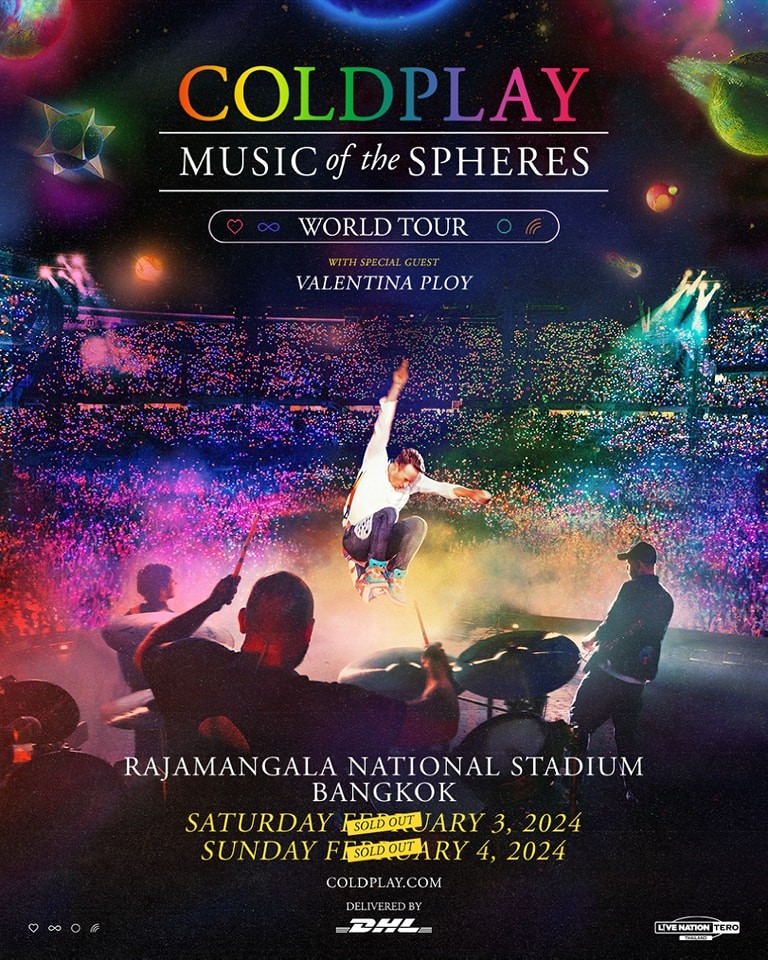 สำหรับ Coldplay : COLDPLAY Music Of The Spheres World Tour 2024 จะจัดขึ้นในวันที่ 3-4 กุมภาพันธ์ 2024 ณ สนามราชมังคลากีฬาสถาน ใครมีบัตรแล้วเตรียมพร้อมกับความสนุกแบบเต็มอิ่มกันได้เลย
