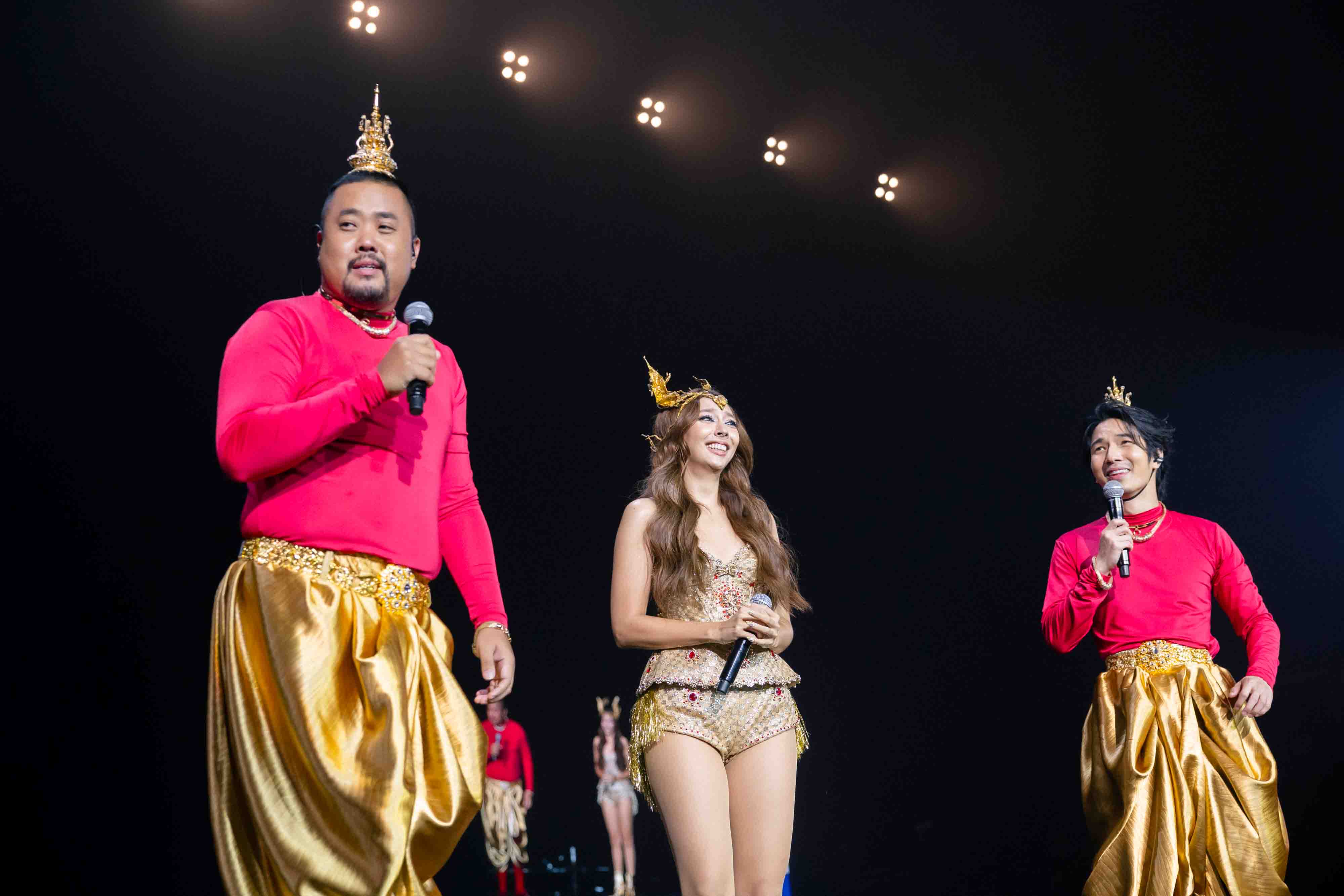 จากนั้นพบกับโชว์สุดเซอร์ไพรส์เมื่อ 2002ราตรี ปรากฏกายออกมาบนพรมวิเศษ กับโชว์ในเพลง ‘จีนี่จ๋า’ และสลับมาโชว์เพลง ‘HOT2HOT’ ร่วมกับ 4EVE ก่อนที่ แก๊งหิ้วหวี จะขึ้นมาในเพลง ‘ฟ้ารักพ่อ’ จนเกิดโมเมนต์ T-POP สาวสามกลุ่มบนเวทีเดียวกันที่เกิดขึ้นยาก แต่งานนี้ทำได้! ปิดท้ายพาร์ทนี้ด้วยเมดเลย์เพลงสามช่าที่ ป๊อบ-โอ๊ต ขนความสนุกพร้อมแขกรับเชิญทุกคนได้ออกมาร้องด้วยกันกับลิสต์เพลงเต้นสนุก ๆ ไม่ว่าจะเป็น ‘เดือนชนเดือน’, ‘สัญญาเดือนหก’, ‘Hula Hula’, ‘คอแห้ง’, ‘เมร่อน’, ‘ไอ้สอง’ และ ‘โคโยตี้’ พาร์ทนี้ต้องยกความปังให้กับแก๊งหิ้วหวีในการโชว์ประสานเสียงร้องในเพลง ‘ไอ้สอง’ บอกเลยว่าเริ่ดมากค่ะแม่