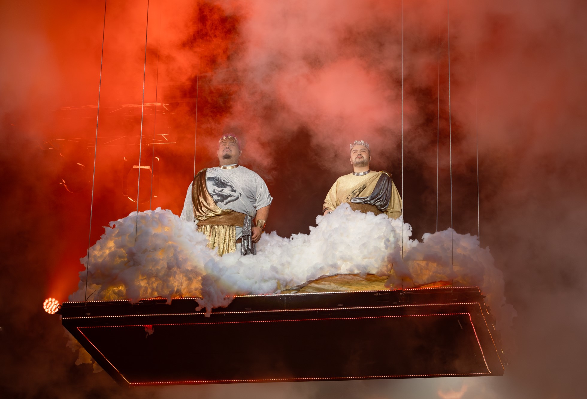 เปิดเวทีอีกครั้งเมื่อ ป๊อบ-โอ๊ต ได้ปรากฏตัวลอยอยู่เหนือเมฆออกมาในชุดเทพ พร้อมกับเพลง ‘วัดใจ’ ต่อด้วยเพลง ‘เล่นของสูง’ จากนั้นได้เปิดตัวแขกรับเชิญคนแรกไททศมิตร ที่มากับเพลง ‘แดงกับเขียว’ ตามมาด้วยการร้องแจมกันกับ ป๊อบ-โอ๊ต ในเพลง ‘นักเลงเก่า’ ก่อนที่สุวรรณ สุวาน ที่มีหน้าที่ตามหาดวงวิญญาณ ป๊อบ-โอ๊ต ให้กลับไปอยู่ในนรก ซึ่งรับบทโดย อาร์ต มารุต และ อุล ภาคภูมิ ที่ตามไปจนเจอกับ คารีสา ครั้งนี้เจ้าตัวขอโชว์ลีลาการเต้นและการร้องด้วยไมค์แบบออโต้จูนในเพลง ‘I AM THE BEST’ ก่อนที่แฟน ๆ จะยิ่งกรี๊ดหนักกว่าเดิม เมื่อศิลปินรับเชิญวง 4EVE ที่มากับเพลงใหม่ล่าสุดเพลง ‘กักกั๊ก’ และเพลงฮิตอย่างเพลง ‘วัดปะหล่ะ’