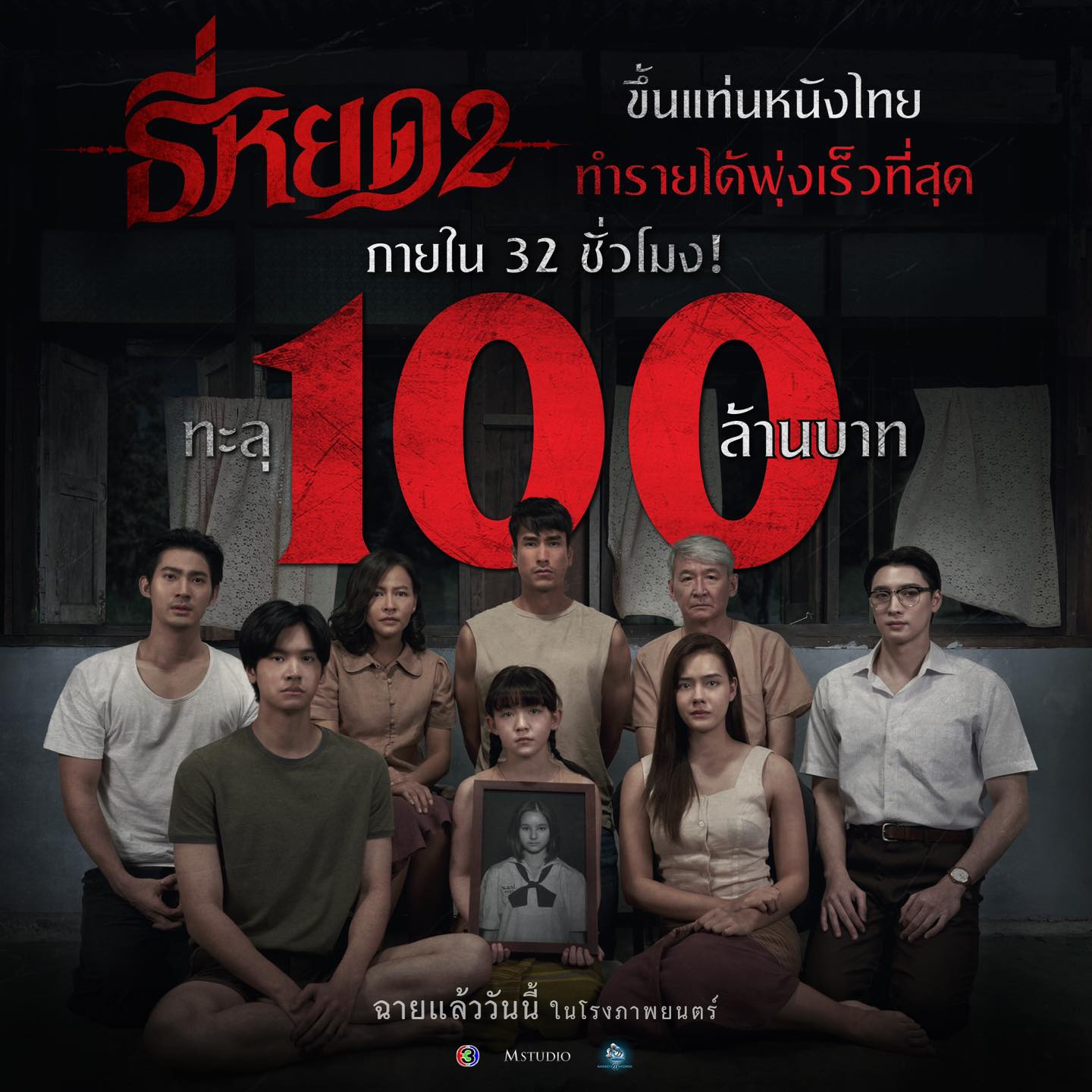 ธี่หยด 2 หนังผีไทยที่กำลังทำรายได้ถล่มทลายทั่วประเทศ หลังเข้าฉายในโรงภาพยนตร์ไปเมื่อวันที่ 10 ตุลาคมที่ผ่านมา ล่าสุดสามารถกวาดรายได้ทะลุหลัก 400 ล้านบาทเป็นที่เรียบร้อย โดยใช้เวลาเพียง 6 วันเท่านั้น จากตัวเลขรายได้ดังกล่าวทำให้ขณะนี้ ธี่หยด 2 ขยับขึ้นมาเป็นหนังไทยทำรายได้สูงที่สุดของปี 2567ธี่หยด 2 ได้การตอบรับจากผู้ชมอย่างถล่มทลายตั้งแต่วันแรกของการเข้าฉาย โดยมีการเปิดเผยยอดจองตั๋วเข้าชมล่วงหน้าสูงเป็นประวัติกาล ไม่เว้นแม้แต่รอบฉายที่ดึกที่สุดเวลา 03.00 น. ก็มีผู้ชมเกินครึ่งโรงภาพยนตร์ และสามารถทำรายได้เปิดตัววันแรกไปสูงถึง 80 ล้านบาท และใช้เวลาเพียง 32 ชั่วโมงในการทะยานสู่รายได้ 100 ล้านบาทส่วน 5 อันดับหนังไทยที่ทำรายได้สูงที่สุดในปี 2567 ประกอบด้วย1. ธี่หยด 2 – 400 ล้านบาท2. หลานม่า – 339 ล้านบาท3. พี่นาค 4 – 178 ล้านบาท4. อนงค์ – 147.7 ล้านบาท5. วิมานหนาม – 134.1 ล้านบาทธี่หยด 2 เป็นภาพยนตร์ไทยแนวสยองขวัญเหนือธรรมชาติ ผลงานการกำกับของ คุ้ย-ทวีวัฒน์ วันทา เล่าเรื่องราว 3 ปีหลังการตายของน้องสาวอย่าง แย้ม ทำให้ ยักษ์ ยังคงตามล่าผีที่คร่าชีวิตน้องสาวไปอย่างไม่ลดละ โดยที่ไม่รู้เลยว่าการเดินทางตามหากลับนำมาซึ่งจุดเริ่มต้นของความสยอง เมื่อ จ่าปพันธ์ ได้พบเข้ากับหนังสือวชิรญาณวิเศษที่ได้บันทึกเรื่องราวของของ ปอบตาพวง ผีปอบตัวเเรกที่ถูกบันทึกชื่อในสยามเเละมันหนีไปอยู่ไปดงโขมดธี่หยด 2 เข้าฉายแล้ววันนี้ทุกโรงภาพยนตร์ภาพ : Ch3 Thailand / M Studio