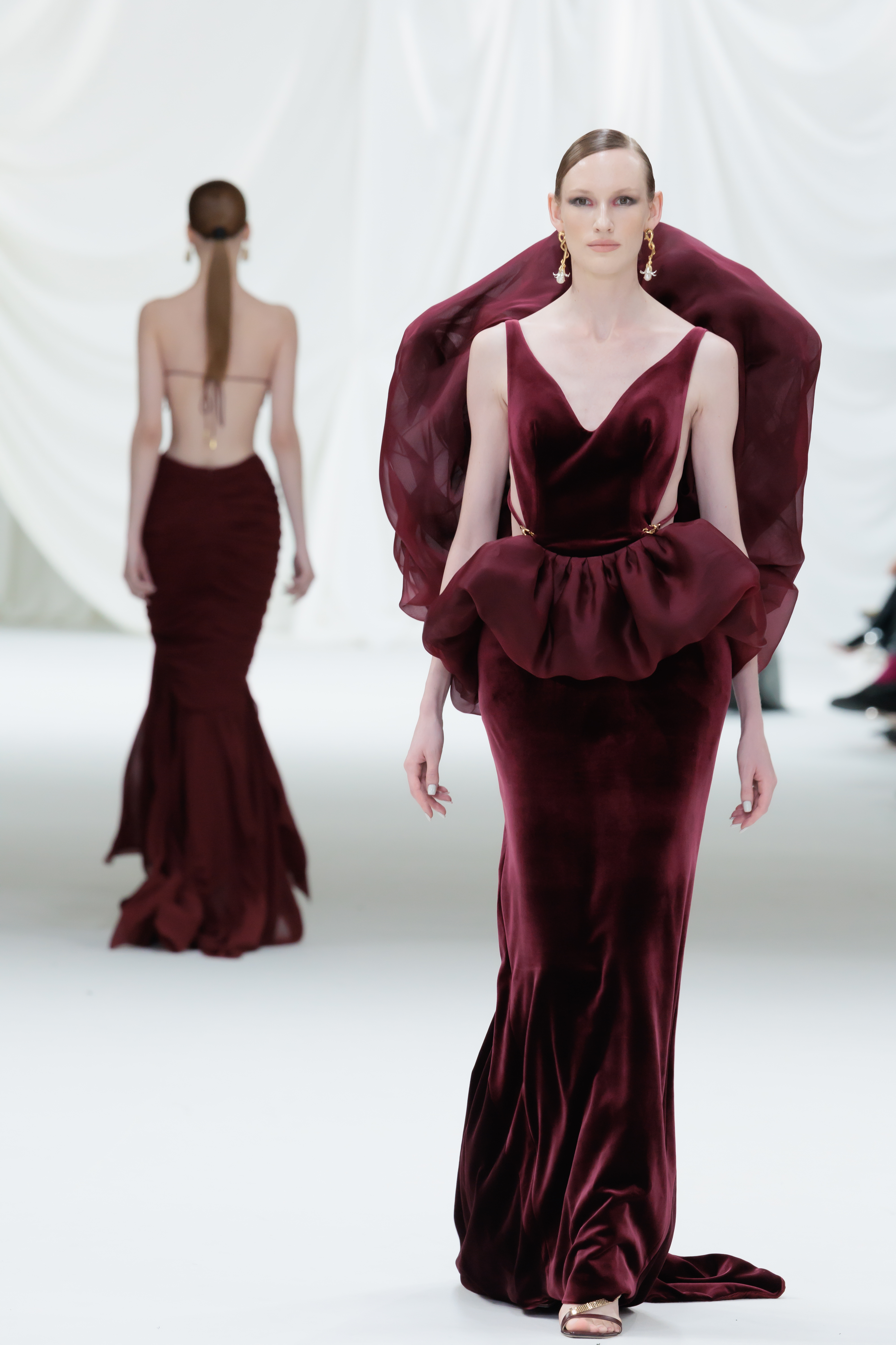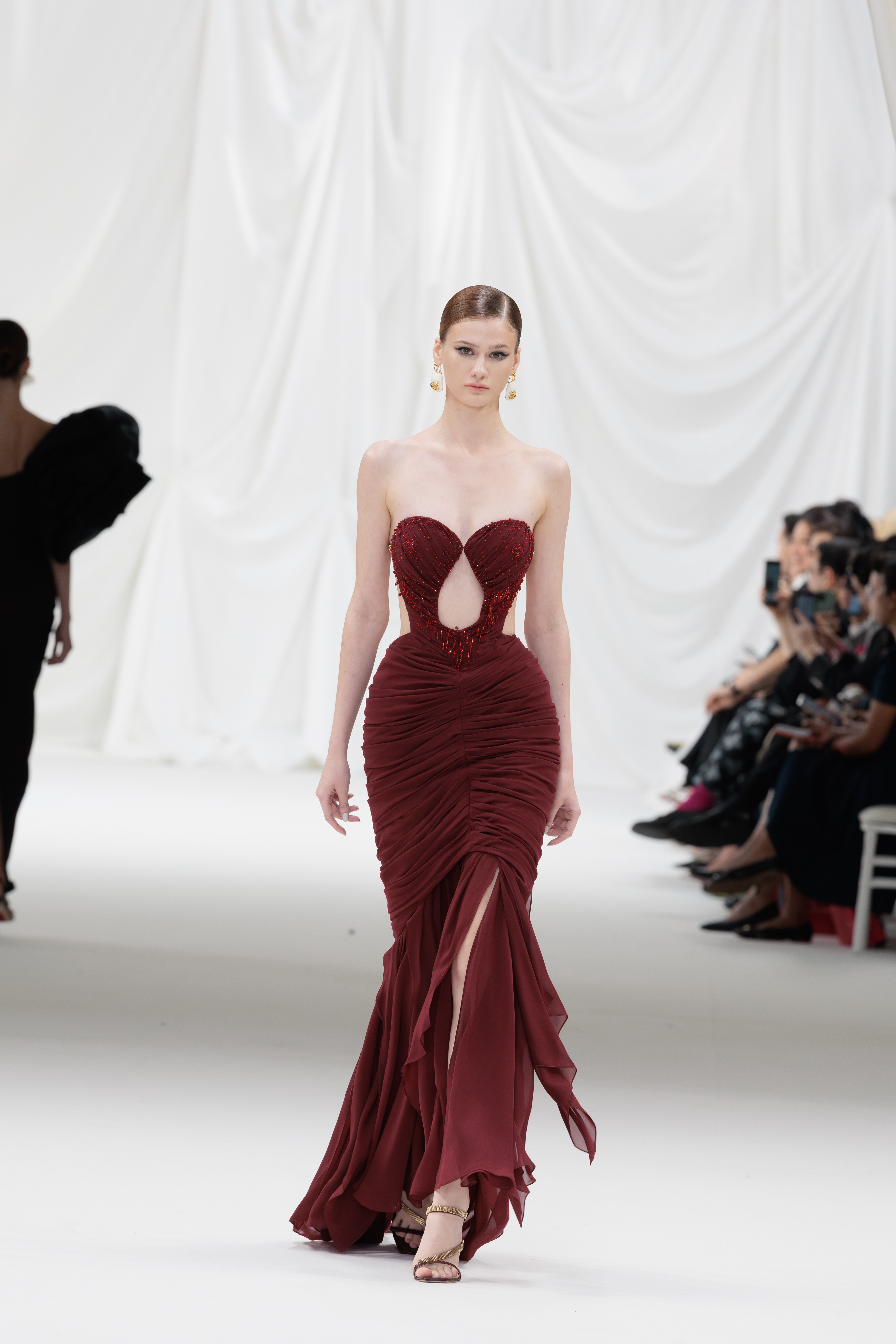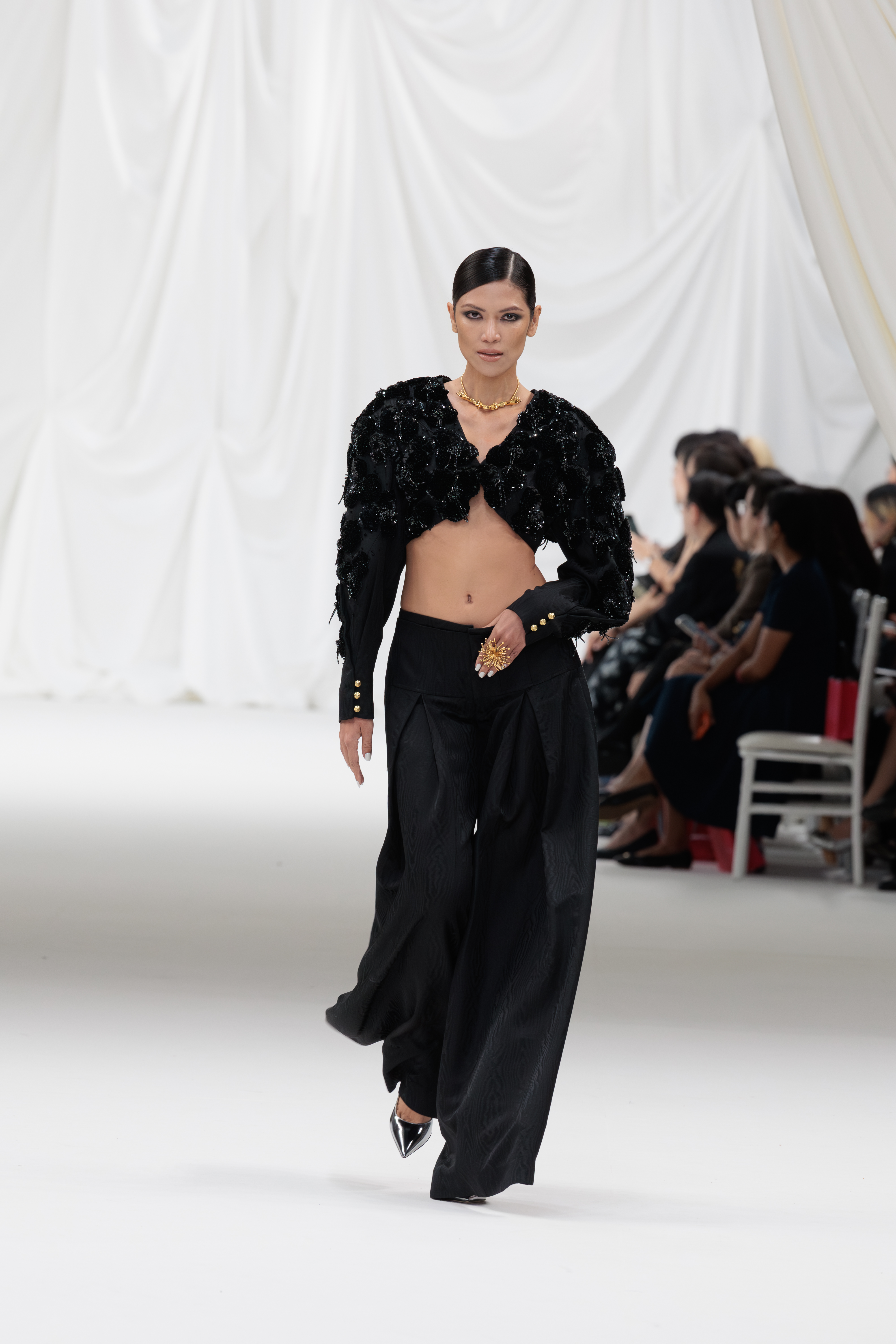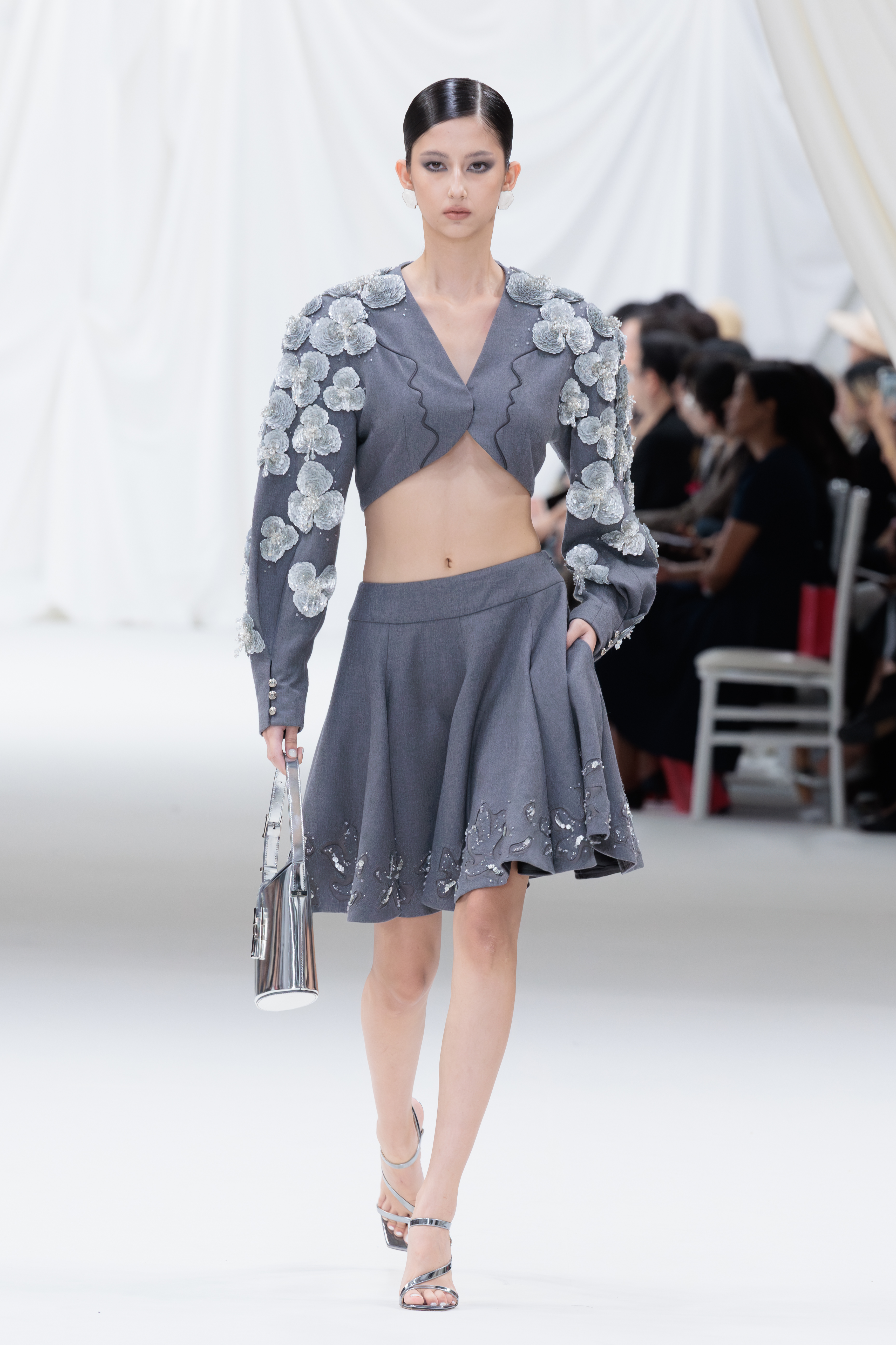 เสื้อผ้าในกลุ่มรันเวย์นอกจากจะแฝงกลิ่นอายของงานศิลปะยังบ่งบอกถึงความสามารถของช่างฝีมือแห่ง SIRIVANNAVARI Atelier ผ่านการปักเป็นลวดลายดอกไม้ที่ต่อยอดมาจากภาพฝีพระหัตถ์ขององค์ดีไซเนอร์ ผสมผสานกลิ่นอายของวัฒนธรรมไทยได้อย่างน่าสนใจ เนรมิตให้ดอกไม้มีสามมิติจากเส้นด้ายอันบอบบาง ลูกปัด คริสตัลและวัสดุที่เปล่งประกายดั่งงานศิลปะนูนต่ำที่ถูกชุบชีวิตขึ้นจากงานหัตถศิลป์อันประณีต ในอีกแง่มุมหนึ่งนั้น คอลเลกชันนี้ผสมผสานความงามสง่าอันเป็นอมตะเข้ากับความทันสมัย ผ่านเทคนิคการจับเดรปตามขนบและเสน่ห์แห่งงานร่วมสมัย จีบผ้าที่ลดหลั่นลงมาล้วนได้รับการสร้างสรรค์ขึ้นมาอย่างวิจิตรบรรจง ด้วยการใช้วัสดุนานาชนิด เช่น หนัง ผ้าวูล ผ้าซาติน ผ้าเดนิมในโทนสีที่เสริมรับกัน ทั้งสีเบอร์กันดี (burgundy) สีเทา สีดำ และสีน้ำเงิน